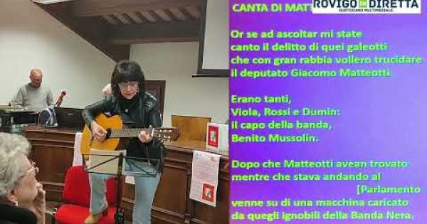 ADRIA - Il libro "Matteotti nella memoria cantata tra storia e cantastorie" di Enzo Bellettato è stato presentato a Palazzo Tassoni, Adria, in occasione del centenario dell'uccisione di Giacomo Matteotti. L'incontro, organizzato dalla biblioteca comunale, è stato aperto da Paolo Rigoni, che ha sottolineato l'importanza del libro nella comprensione di come la vicenda Matteotti abbia inciso nel sentimento popolare. Il sindaco Massimo Barbujani ha auspicato ulteriori iniziative per celebrare il centenario ad Adria, mentre Antonio Lodo della Minelliana ha evidenziato la rilevanza di Giacomo Matteotti come figura politica e culturale europea. Enzo Bellettato ha iniziato la presentazione ricordando le origini trentine della famiglia Matteotti e il suo impegno a favore delle classi più povere, cercando di dare concretezza ai valori di eguaglianza e giustizia sociale. Durante l'evento, Chiara Crepaldi ha interpretato alcune delle canzoni popolari legate a Giacomo Matteotti, vestendo i panni di una cantastorie e suonando la chitarra e un organetto diatonico.