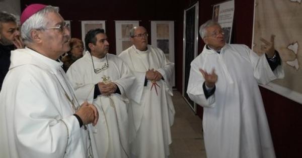 Il vescovo Lucio Soravito de Franceschi alla mostra della Sindone