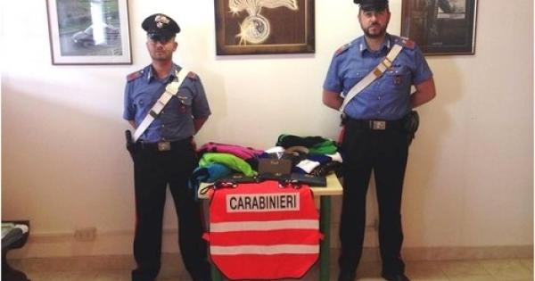 I Carabinieri della stazione temporanea di Rosolina Mare con parte dei prodotti sequestrati
