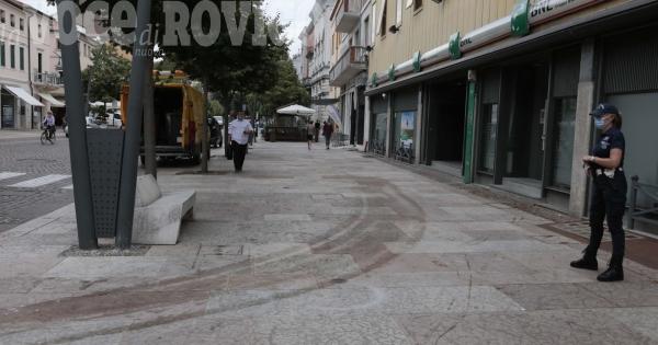 Maxi strisciata di olio macchia il marciapiede di Corso del Popolo all'altezza del barbiere, tra la Bnl e il bar Nazionale. Intorno alle 14.30 una macchina pulitrice di Ecoambiente che stava provvedendo a fare le pulizie della zona al termine del mercato del martedì, a seguito della rottura di un tubo dell'olio, ha sparso una lunga scia di circa 150 metri sul marmo rosa che compone il marciapiede.
