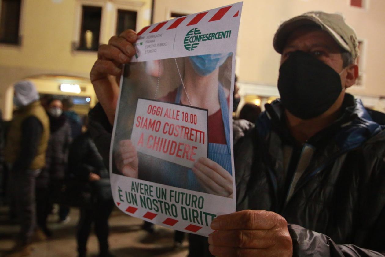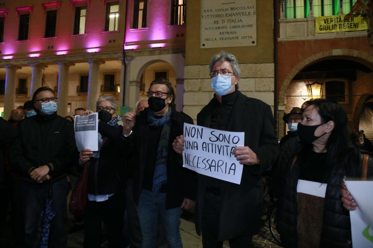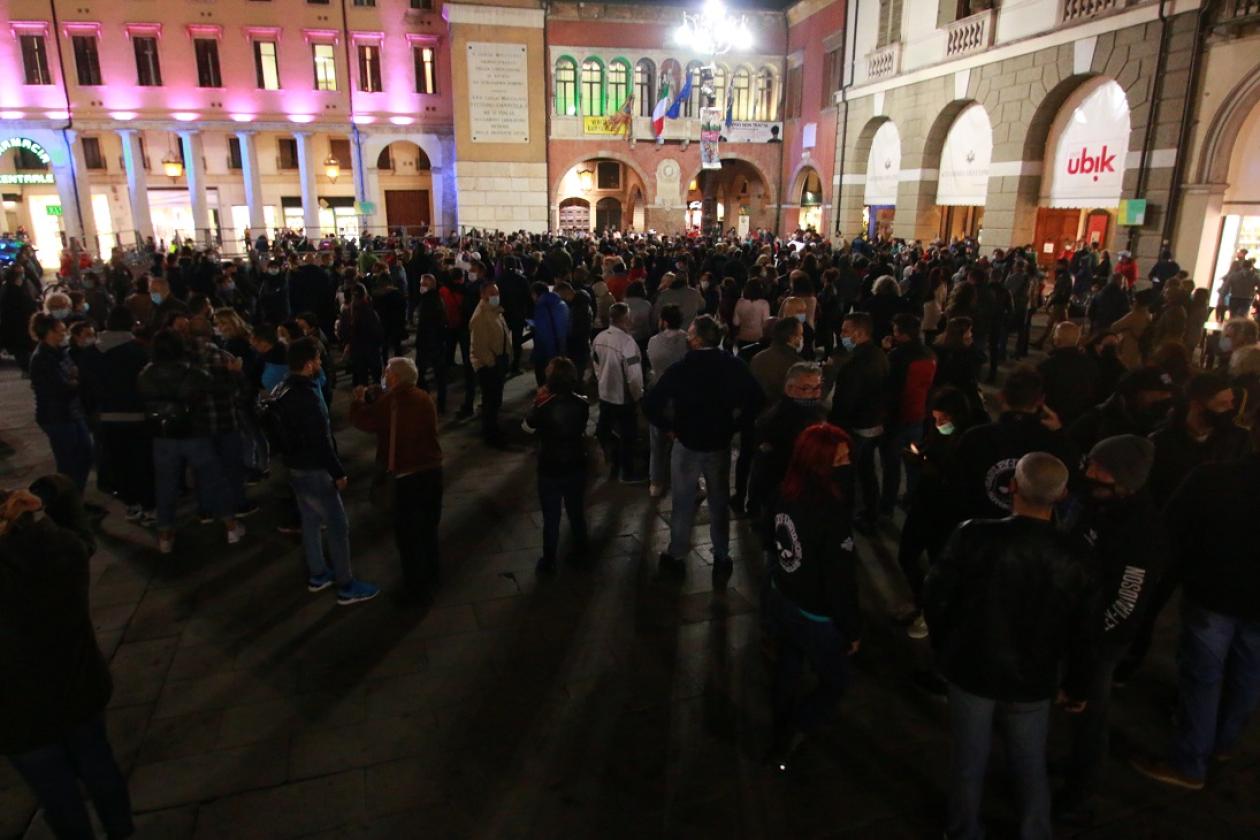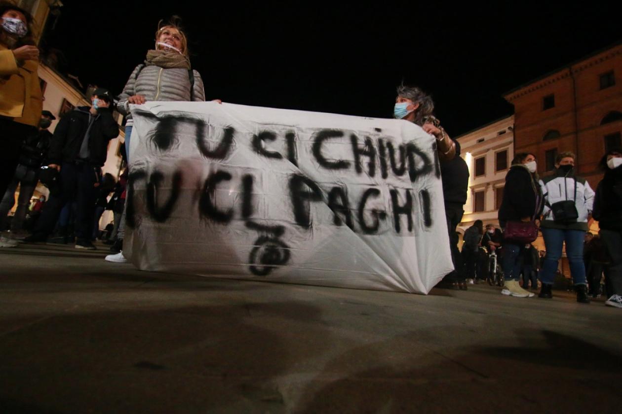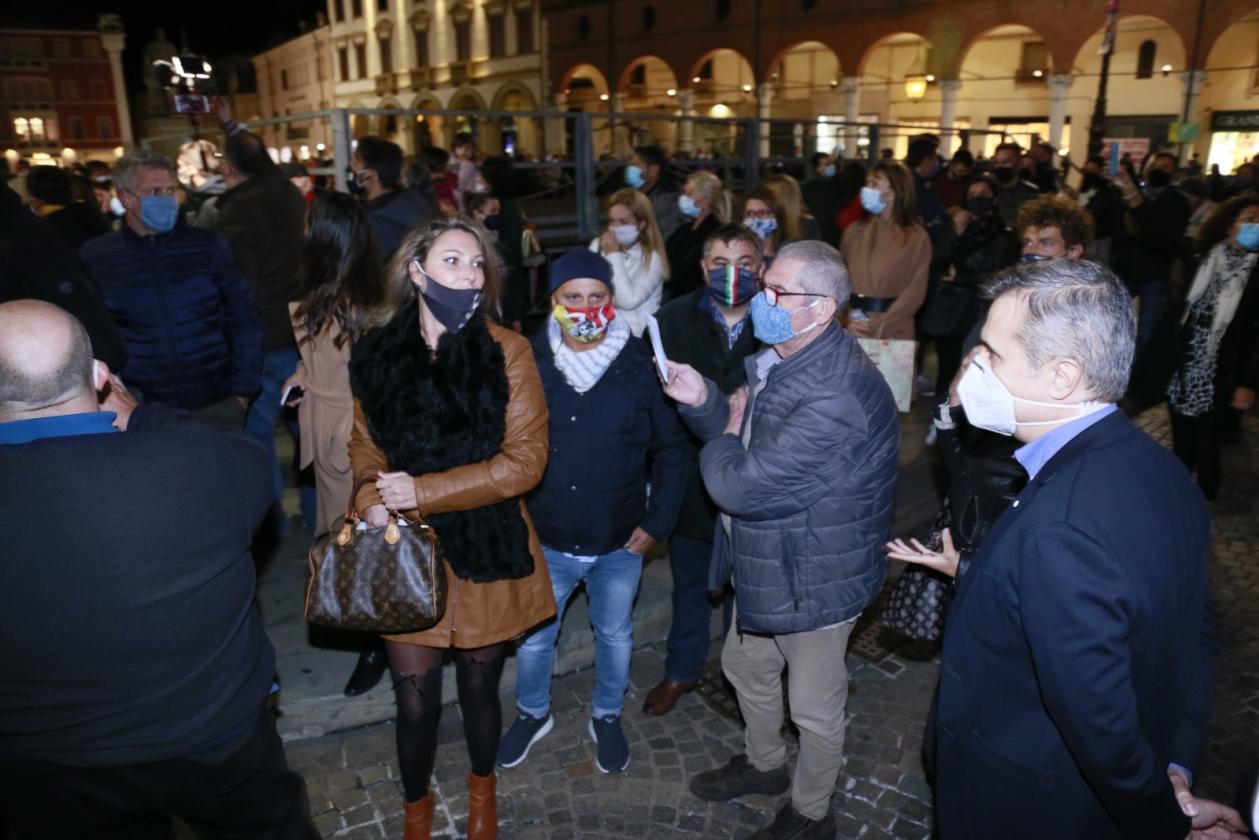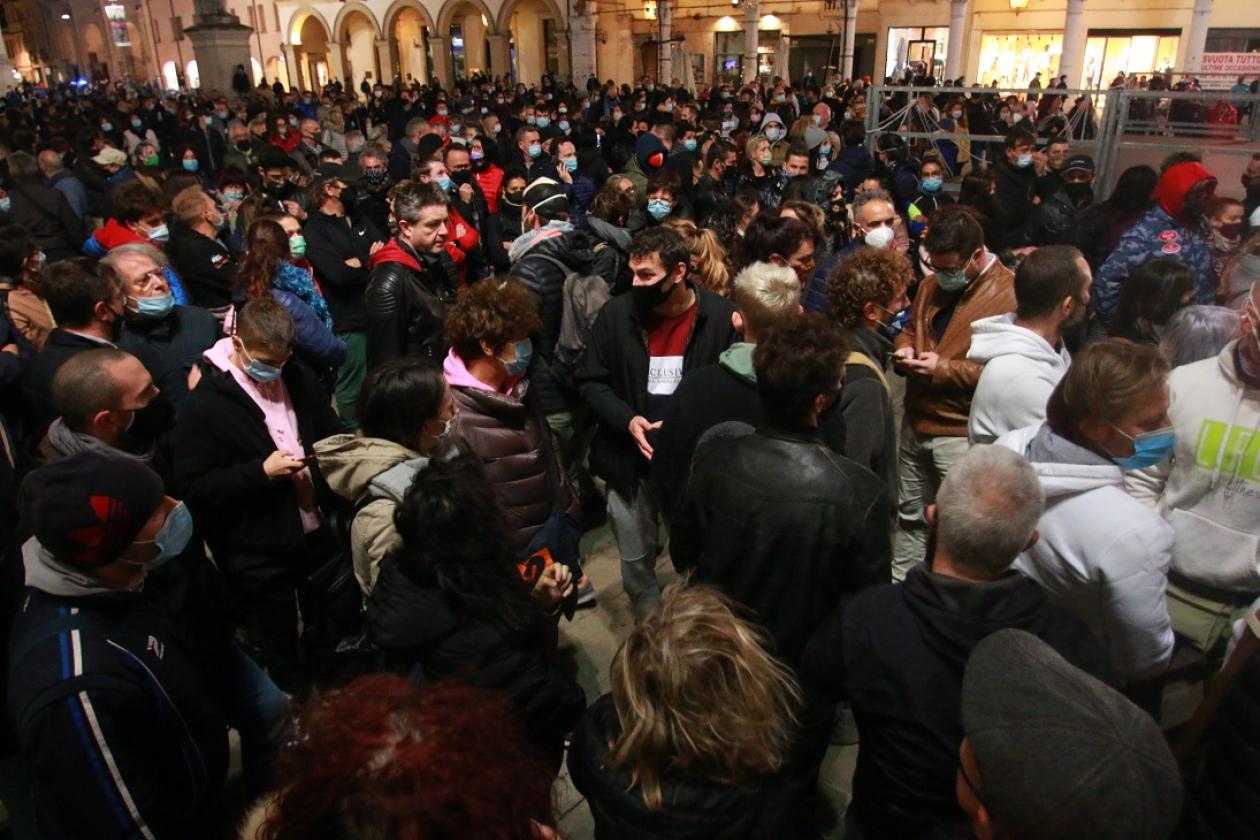 In centinaia hanno manifestato in piazza Vittorio Emanuele, a Rovigo, nella serata di lunedì 26 ottobre, per chiedere di potere lavorare, di potersi guadagnare quella dignità, frutto della fatica, che è prevista espressamente dal nostro ordinamento. La chiamata a raccolta via social, scattata dopo l'annuncio del nuovo Dpcm, con misure molto severe, ha funzionato.