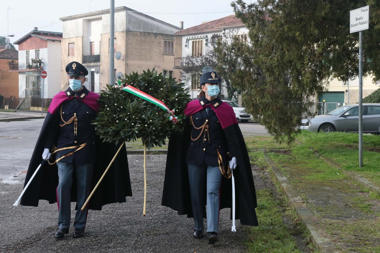 Prima, una breve e intensa cerimonia in piazzale Palatucci, dove sorge il monumento intitolato al poliziotto che non salvò se stesso per salvare gli altri. Giovanni Palatucci, reggente della questura di Fiume, salvò numerosi ebrei dalla persecuzione razziale, sino a quando, scoperto, venne deportato nel lager di Dachau, nel quale trovò la morte, ad appena 36 anni, il 10 febbraio del 1945.
