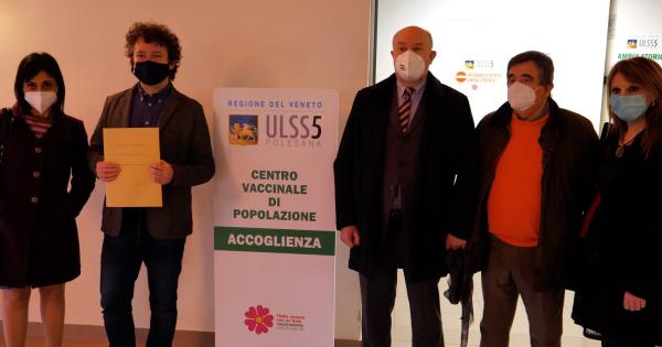 Il commento per direttore generale dell'Ulss 5 Polesana, Antonio Compostella in visita questa mattina al centro vaccinale di Adria