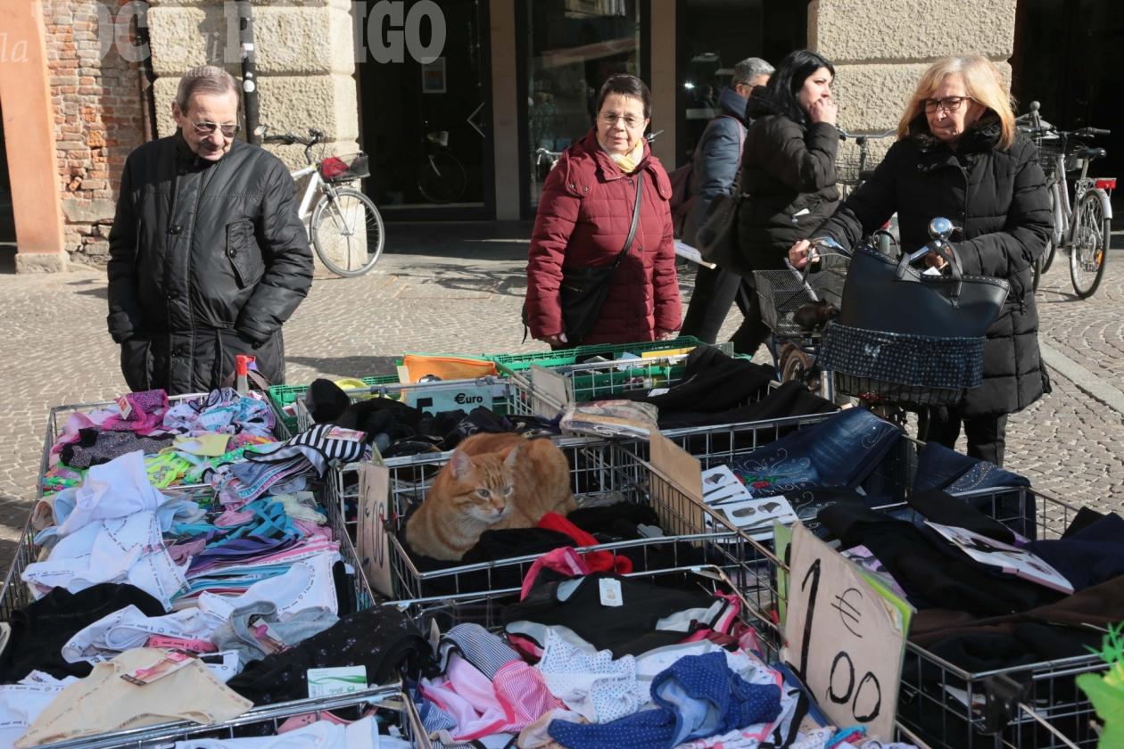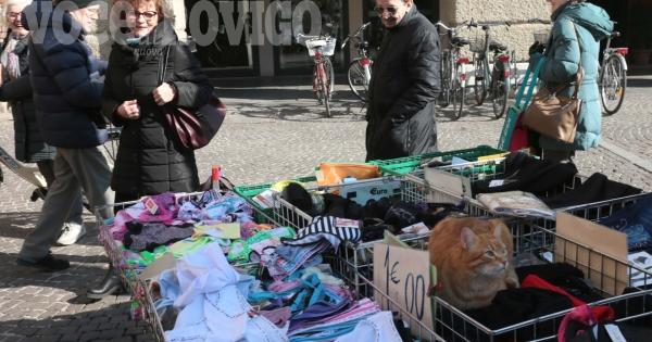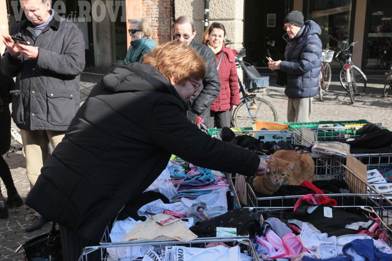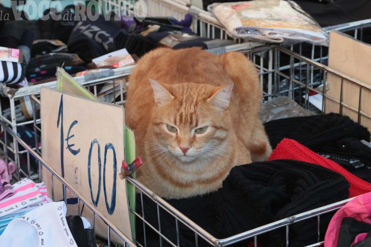 Semplicemente gatto Rossini, rodigino vero, ha deciso di farsi un giro al mercato. E di lasciarsi coccolare dai clienti a spasso per la piazza. Una vera star.