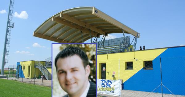 Samuele Giacobbe e le nuove tribune del campo sportivo di Lusia