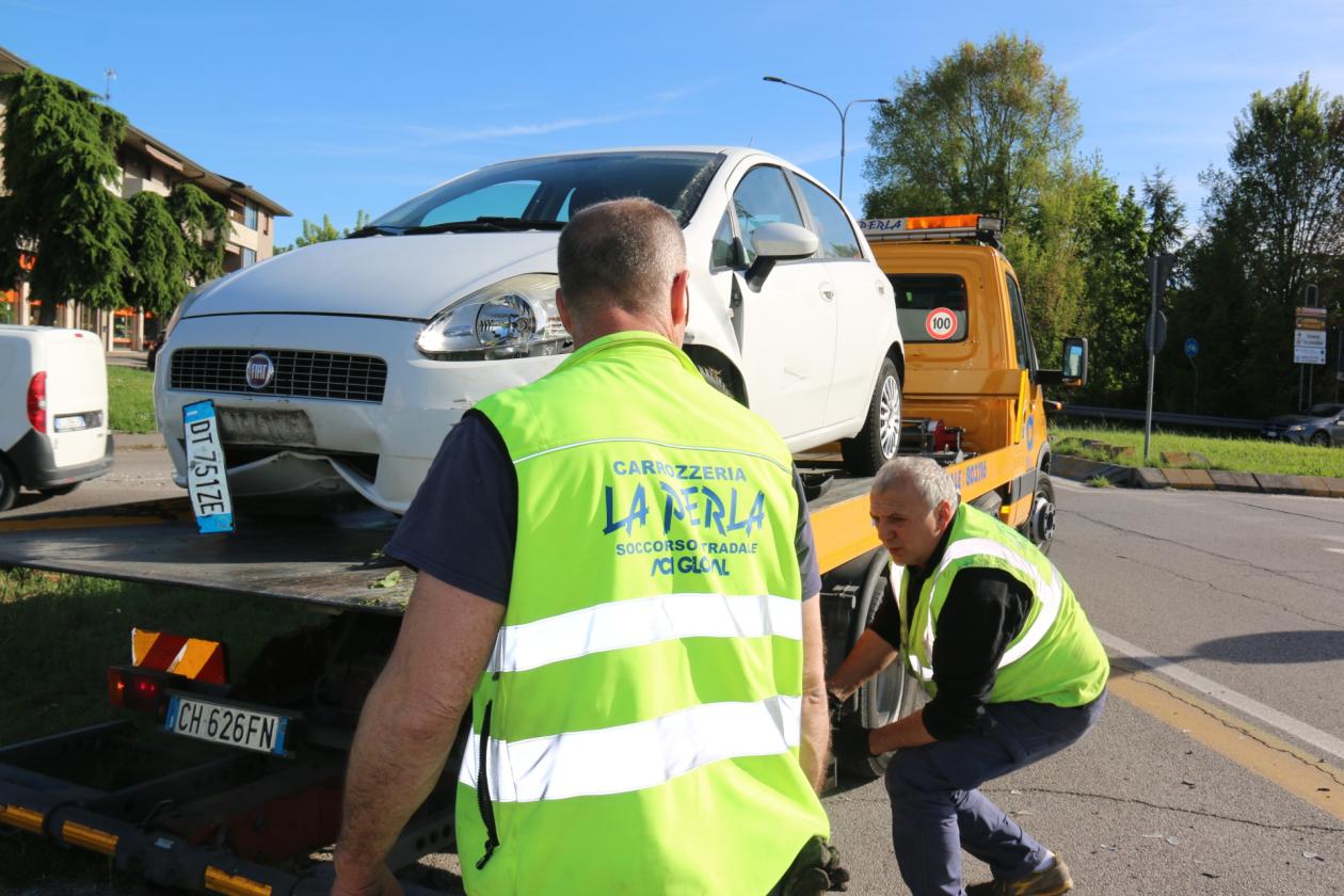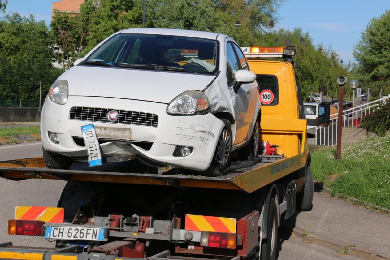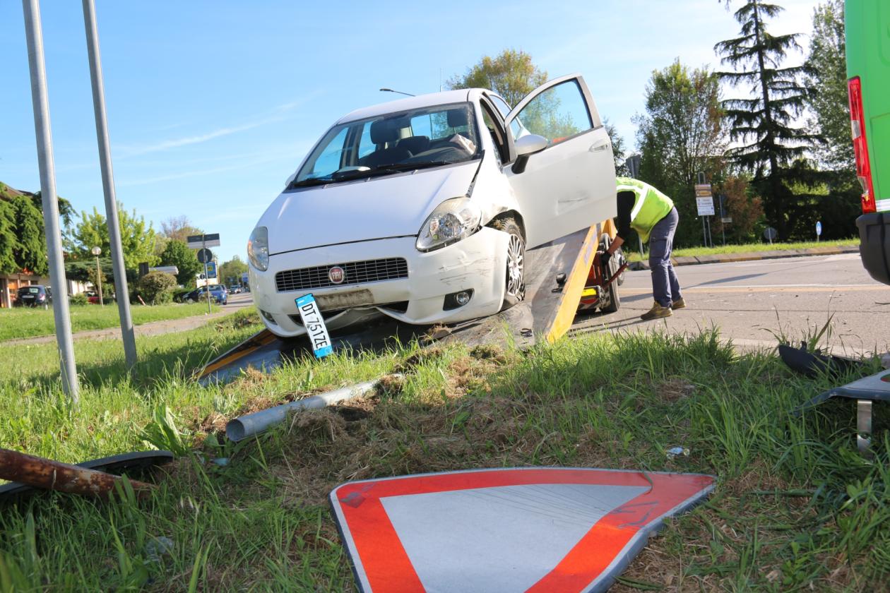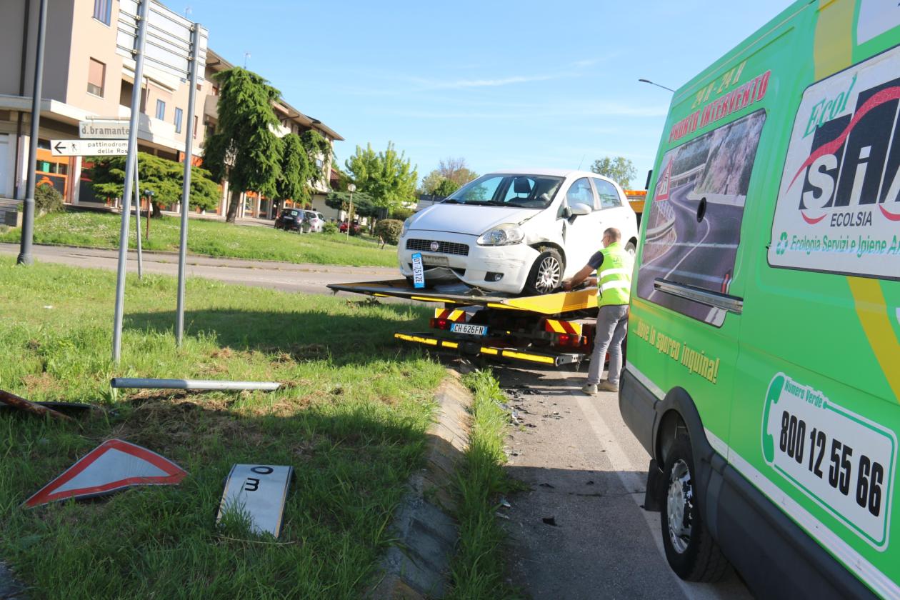 Violento schianto, nel primo pomeriggio di sabato 27 aprile, all'innesto tra viale Porta Adige e via Bramante, all'altezza della rotatoria per via Lina Merlin. Due le auto che si sono scontrate, per motivi al vaglio della polizia locale, subito accorsa sul posto. Tre le persone ferite, per fortuna in maniera lieve.