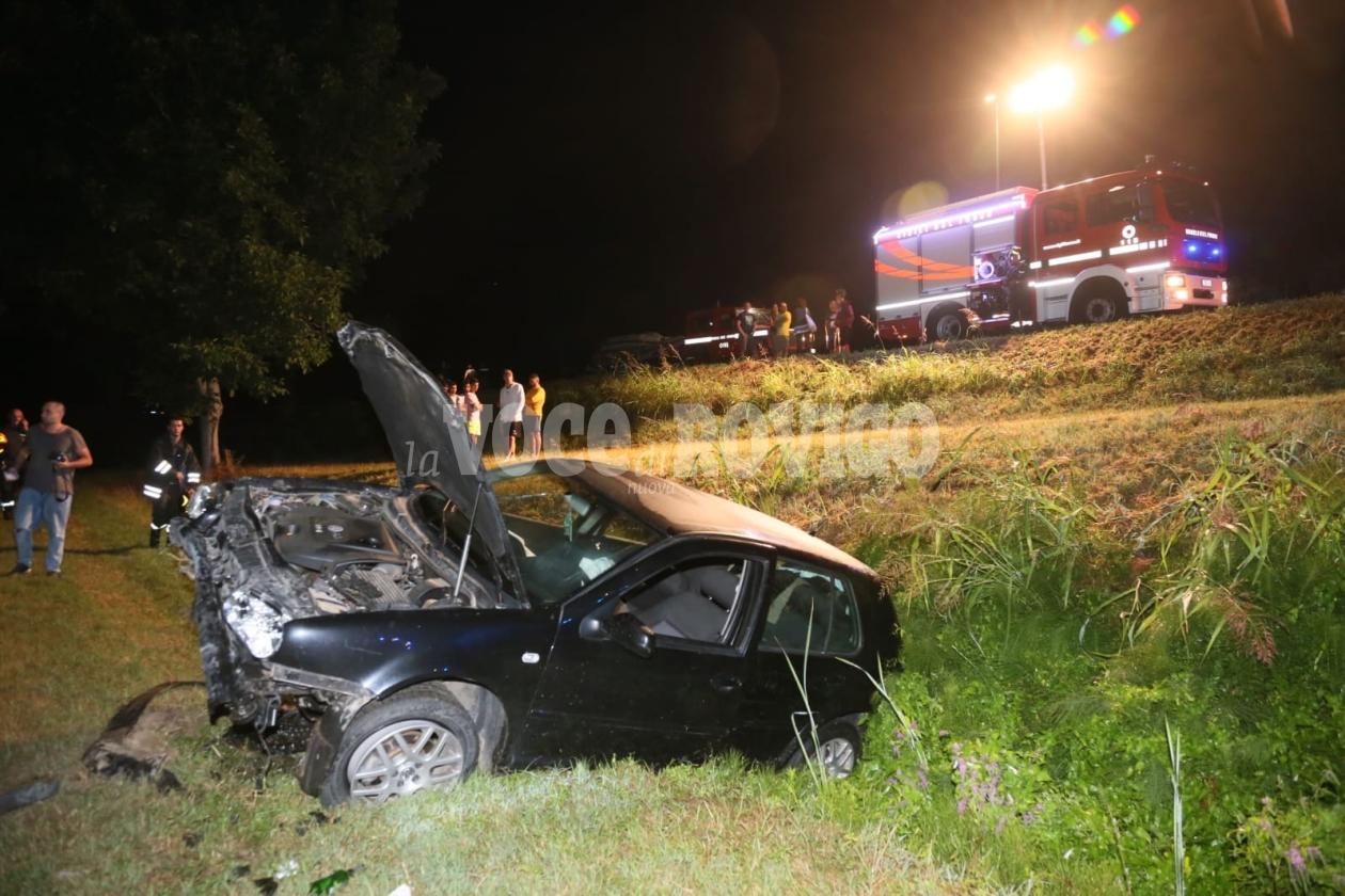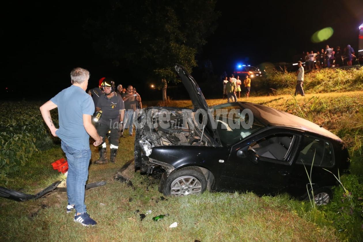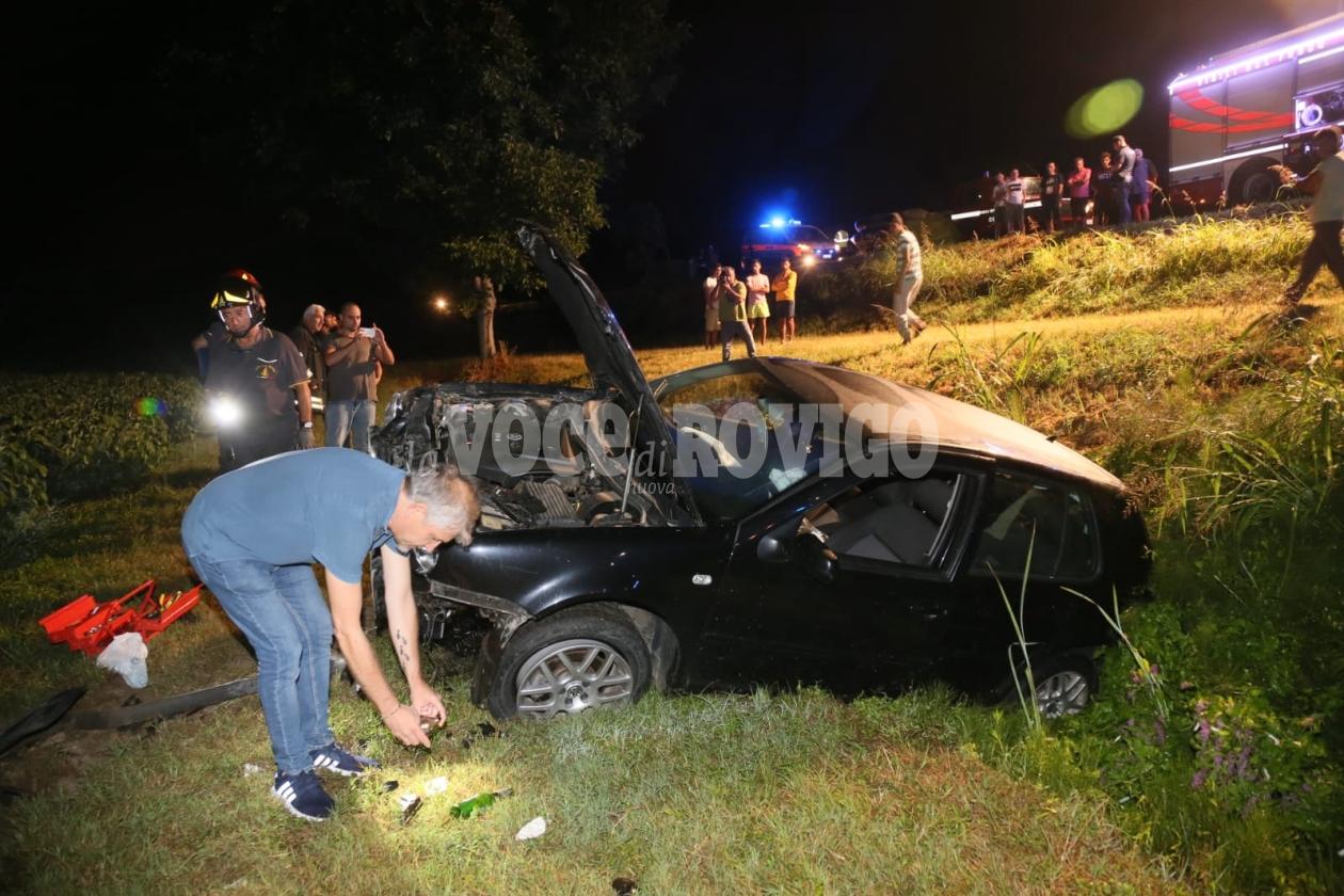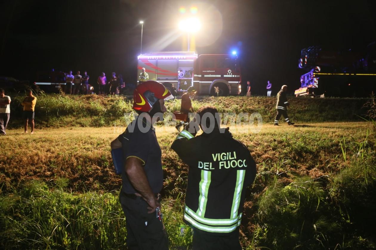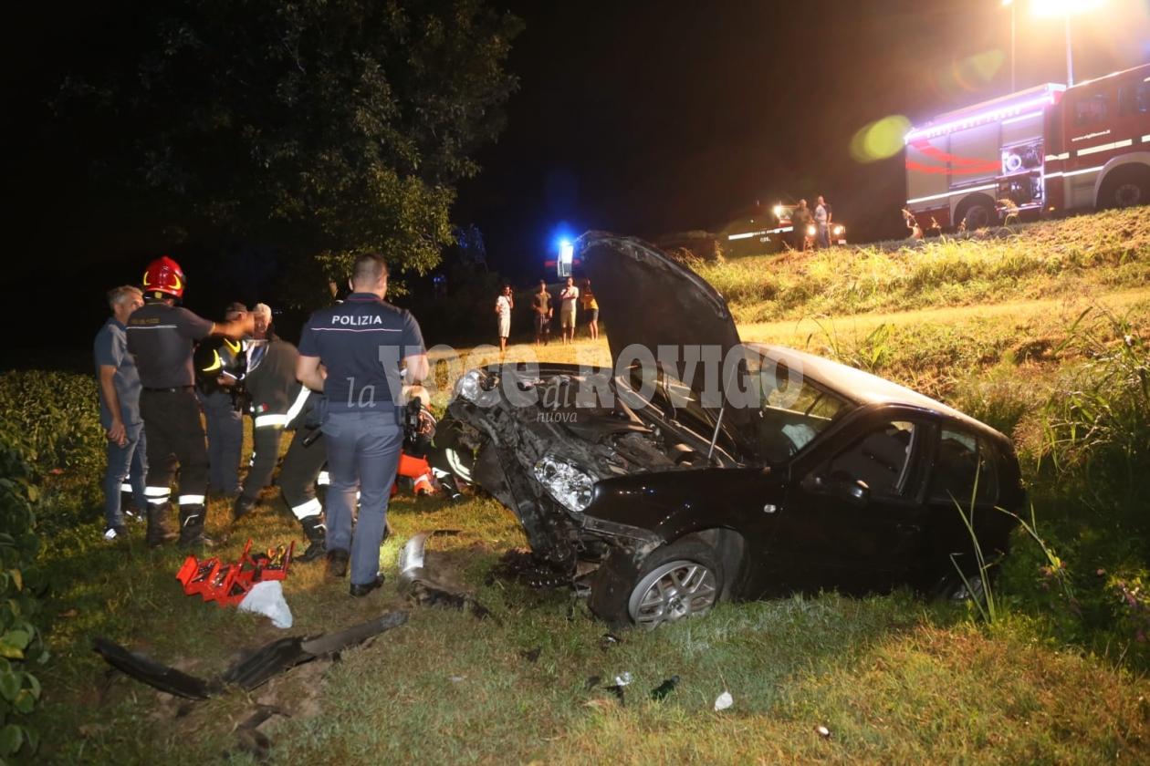 La moto è quindi rimasta incastrata sotto al veicolo, che ha continuato a trainarla per alcune centinaia di metri, prima di finire fuoristrada, per fortuna dalla parte dei campi, invece che da quella del canale.