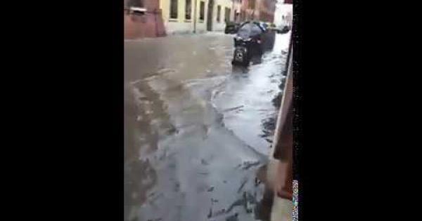 Strade come fiumi. Qui siamo in via Palestro, e l'acqua supera vistosamente l'altezza dei marciapiedi.