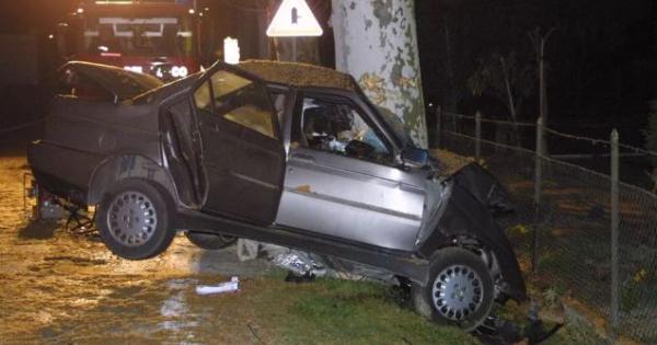 I vigli del fuoco hanno dovuto estrarre il giovane dalle lamiere dell'auto, finita contro un platano, e portarlo al pronto soccorso dell'ospedale Sant'Anna.