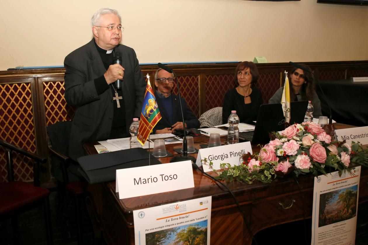 A quattro anni dalla pubblicazione dell’enciclica Laudato si’ di Papa Francesco, questa mattina è stata organizzata in Accademia dei Concordi il convegno dal titolo “La terra brucia! – Per una ecologia integrale a quattro anni da Laudato si’“. Nel corso della mattinata hanno preso la parola monsignor Mario Toso, Vescovo di Faenza – Modigliana, Ravenna, Giorgia Pinelli, ricercatrice dell’Università di Bologna, Mia Canestrini, zoologa, Gianluigi Ceruti, avvocato.