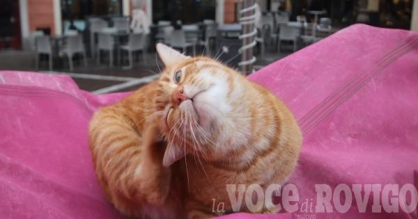Non poteva mancare quindi la visita della mascotte rodigina, il mitico gatto Rossini che oggi nel primo pomeriggio si è comodamente acciambellato su uno dei bracci della giostra. Chissà se, appena il carosello sarà funzionante, avrà voglia di fare un giro.