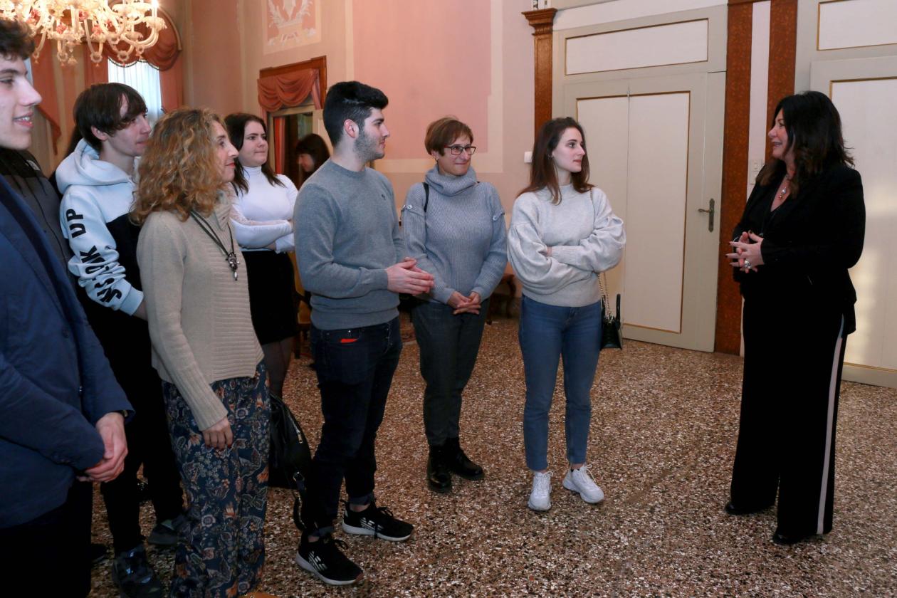 All’incontro era presente anche la docente referente, Valeria Vettorato, dell’Ufficio Scolastico Territoriale che ha presentato i membri della Consulta al Prefetto. Dopo gli onori di casa da parte del Prefetto, gli studenti guidati dal responsabile logistico della Prefettura Stefano Bená, hanno visitato la sede di rappresentanza prefettizia apprendendo numerosi dettagli storici. Durante questa visita gli studenti hanno visto con i loro occhi lo studio riservato al Presidente, in caso di sua visita istituzionale, la camera da letto dove dormirono Vittorio Emanuele e Giuseppe Garibaldi. Al termine della visita i membri della Consulta hanno conosciuto il Prefetto vicario dottor Vitetti e il capo di Gabinetto prefettizio dottor Di Rodi.
