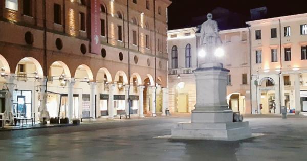 Uno sguardo all’orologio pensando che siano le due di notte. E invece le lancette segnalano che sono da poco passate le 21. Eppure il centro di Rovigo è deserto, quasi spettrale. Nella prima sera del “coprifuoco” anticoronavirus risplendono solo i lampioni di piazza Vittorio Emanuele, tutto il resto è spento, chiuso.