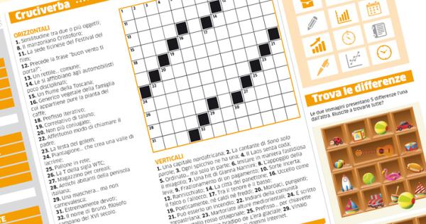 Diversi lettori della "Voce di Rovigo" ci hanno chiesto di poter allietare, per quanto possibile, le loro giornate di lettura del nostro quotidiano con una sezione che, di solito, utilizziamo durante l'estate: quella dell'enigmistica. Così, ascoltando come sempre i preziosi suggerimenti dei nostri affezionati lettori, abbiamo deciso di pubblicare tutti i giorni due pagine dedicate ai più noti giochi di enigmistica.