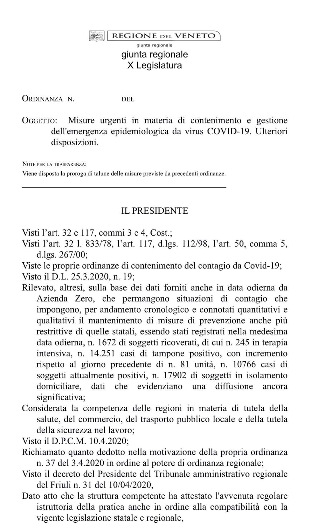 "I veneti sono un popolo eccezionale e l'hanno dimostrato, ma dobbiamo continuare così. Sappiate che ogni vostro capriccio può uccidere qualcuno. L'ordinanza è inserita nel quadro generale di un lockdown soft".