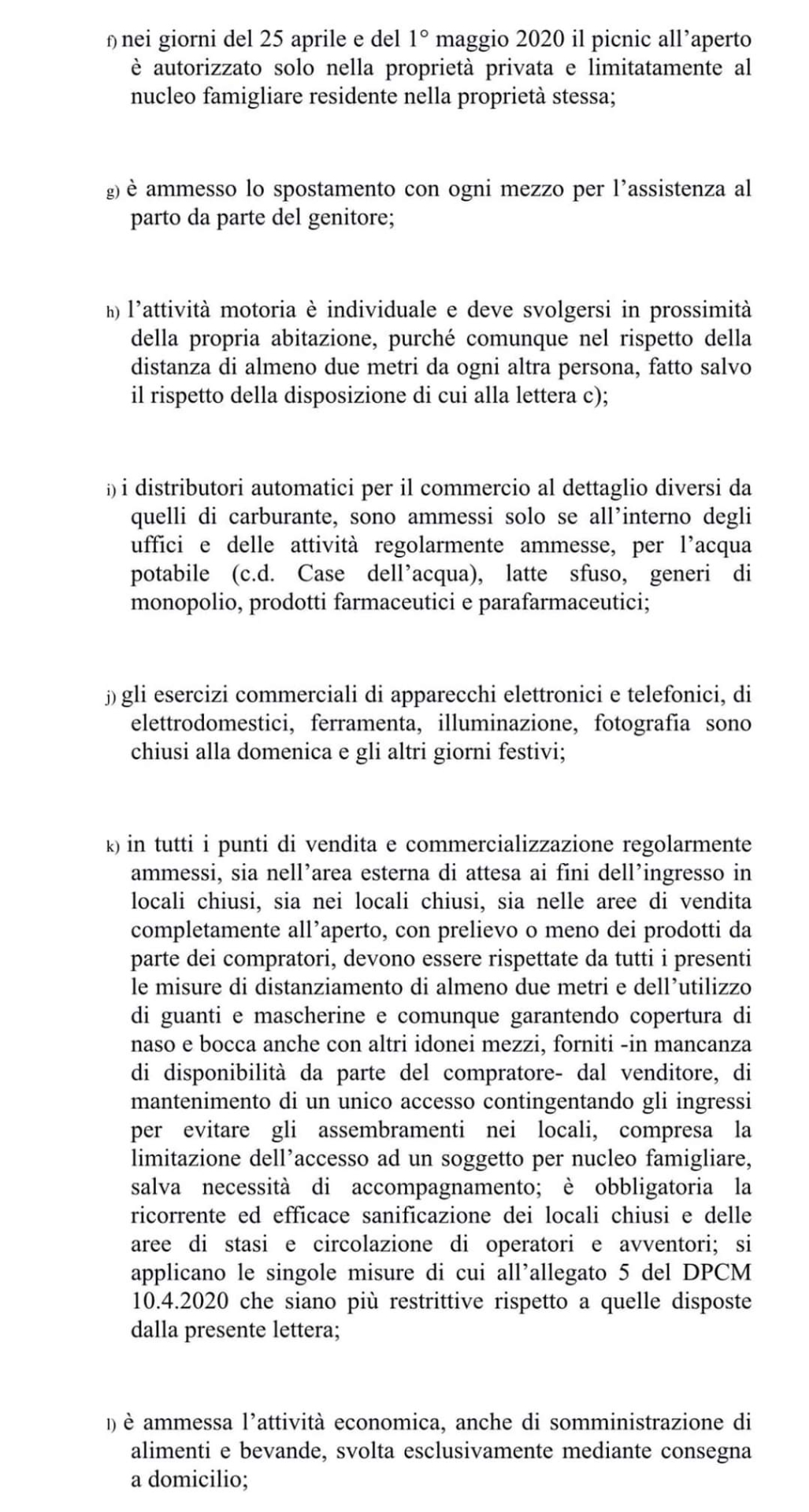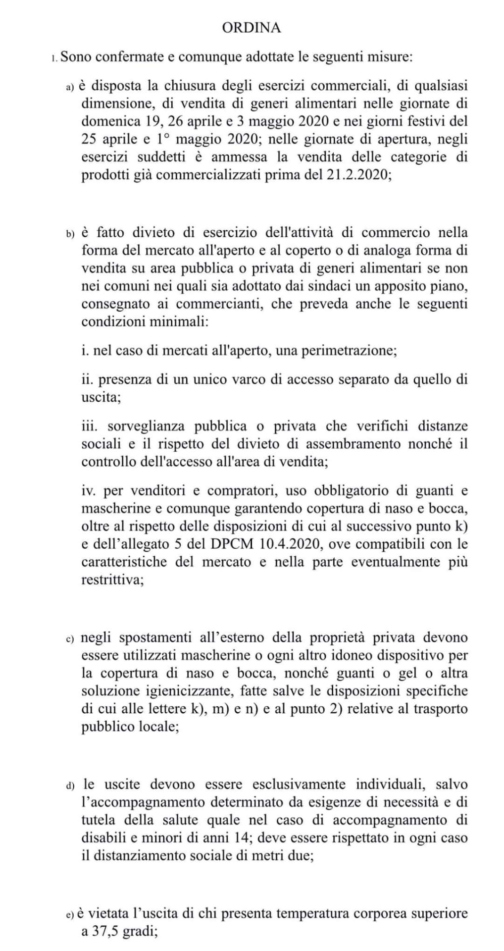 a - chiusura esercizi commerciali e supermercati chiusi la domenica e i giorni festivi; una conferma della disposizione già contenuta nella precedente ordinanza;
