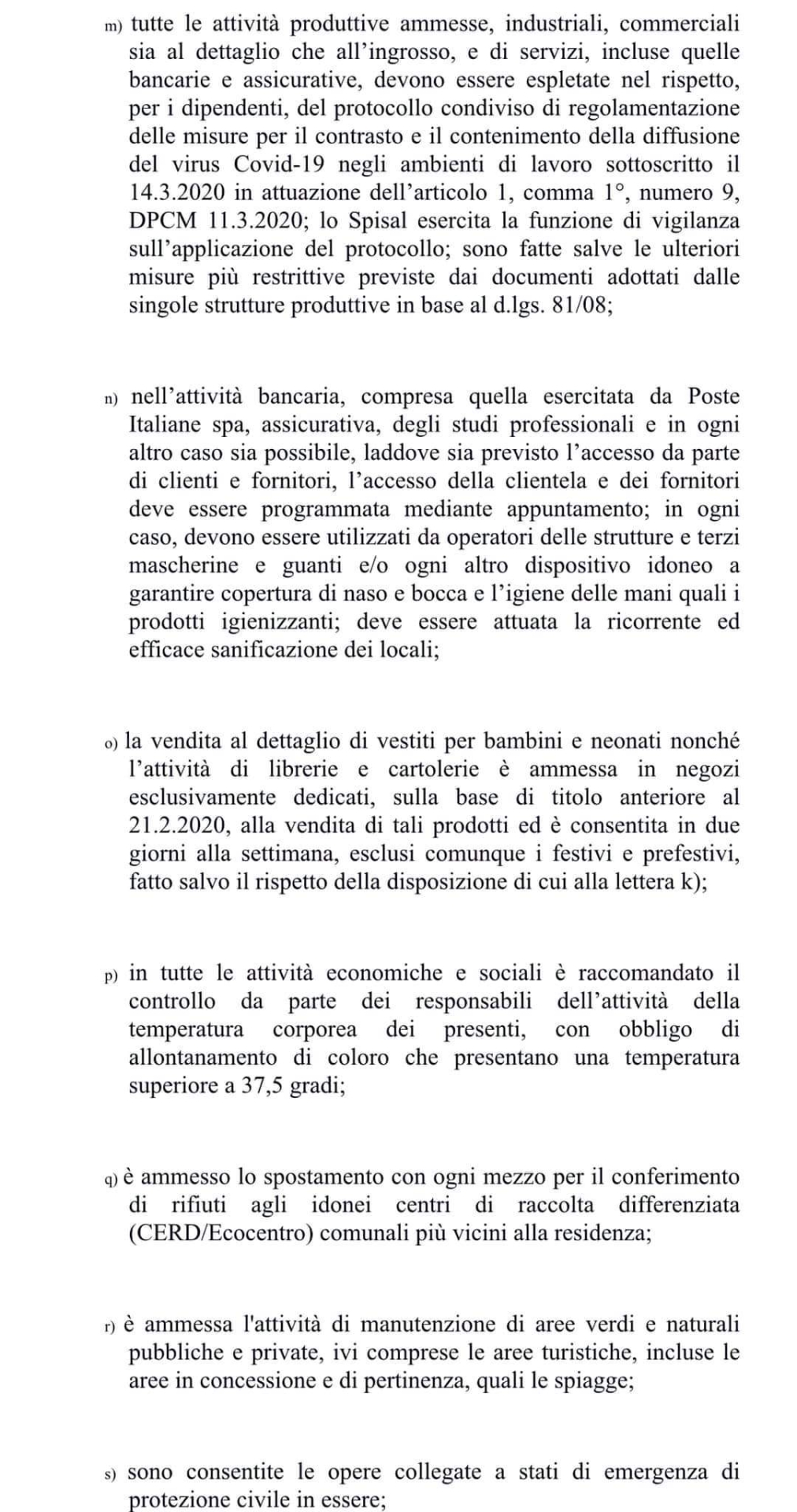 In tutte le attività economiche, inoltre, viene raccomandato il monitoraggio della temperatura dei dipendenti, mandando a casa chi dovesse averla superiore a 37,5°.