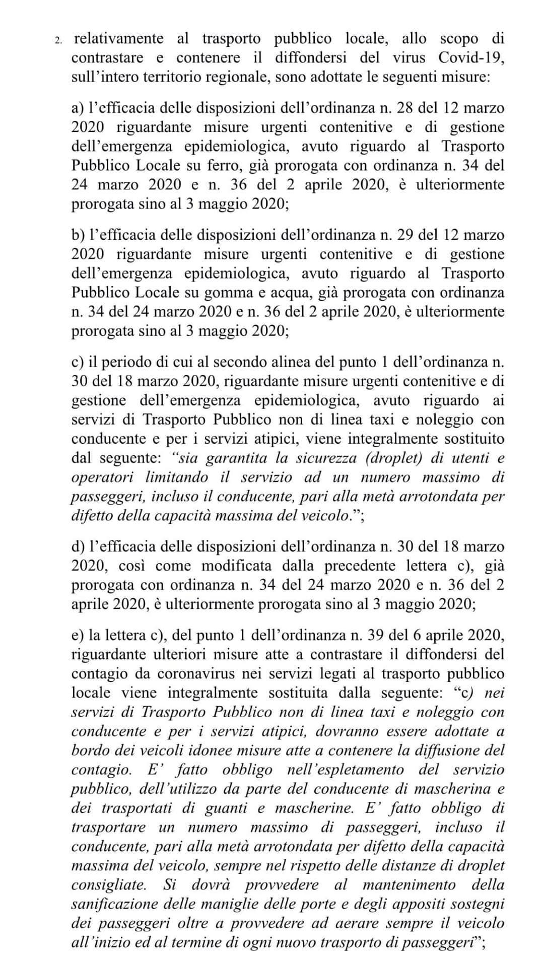 b - confermata l'attività dei mercati a cielo aperto, che ora potranno avere non solo l'alimentare, ma anche abbigliamento per i bimbi, con la permanenza degli obblighi individuati dalla precedente ordinanza, ossia la perimetrazione, un accesso e una uscita unici, vigilanza ai varchi e ingresso contingentato con mascherina e fuanti obbligatori