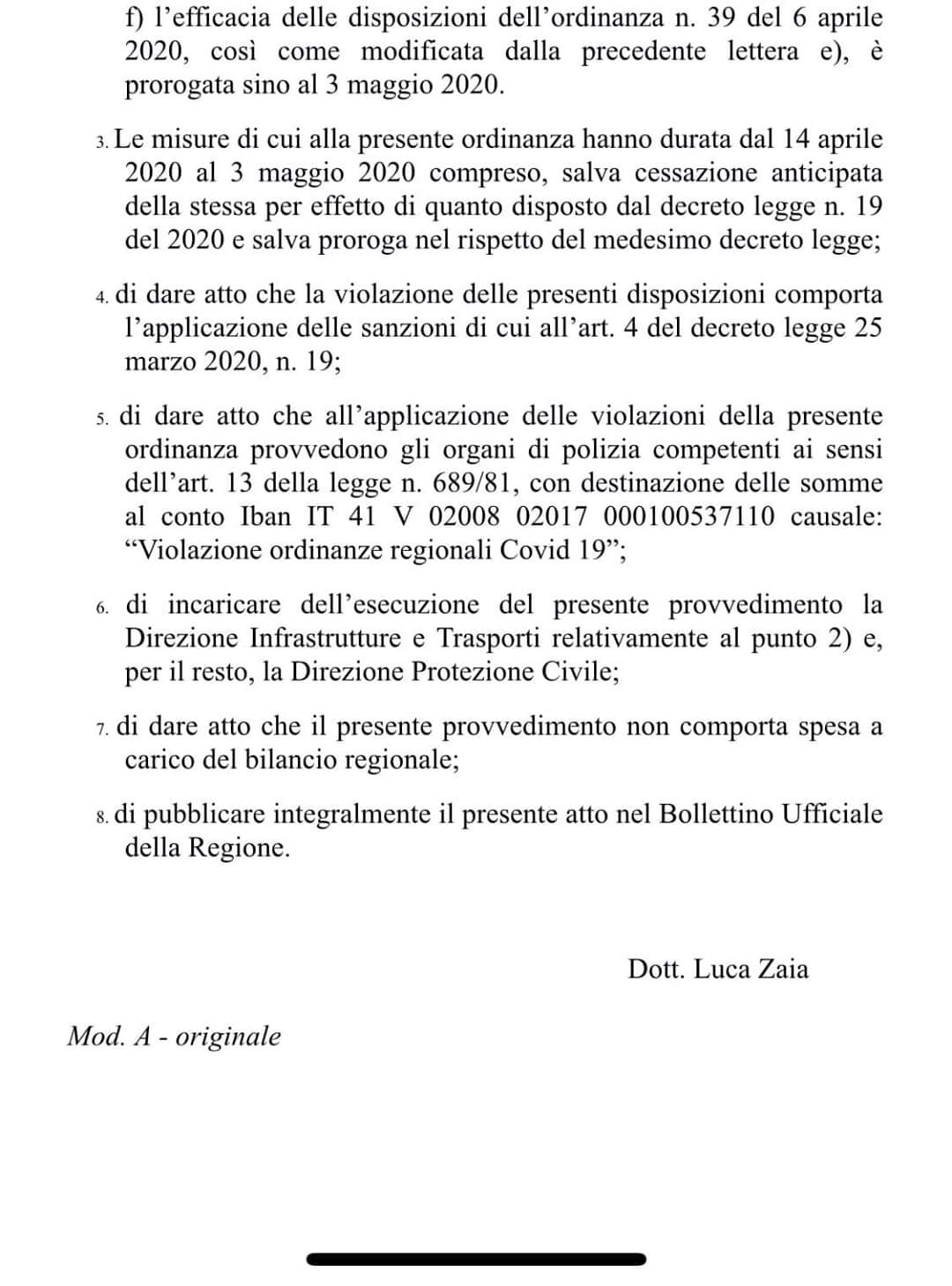 Luca Zaia, Presidente della Regione Veneto, ha firmato la nuova ordinanza