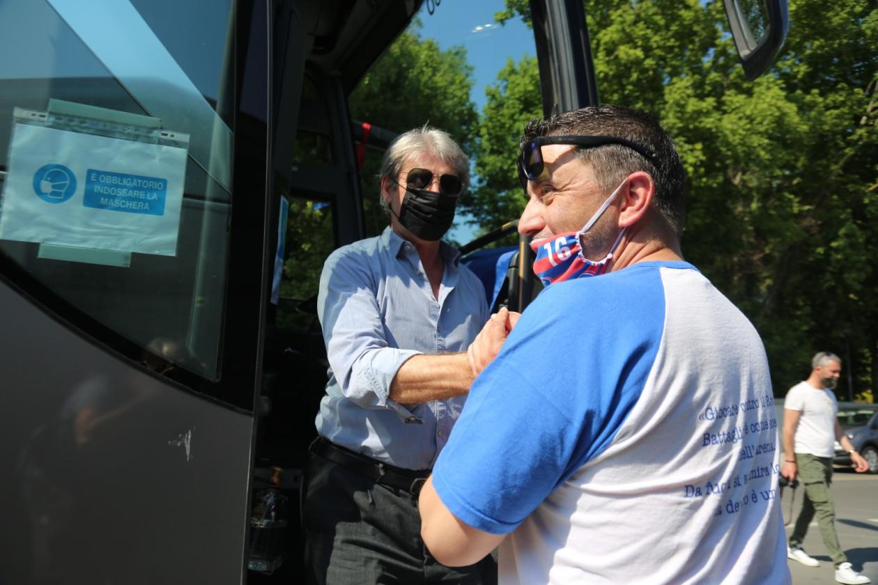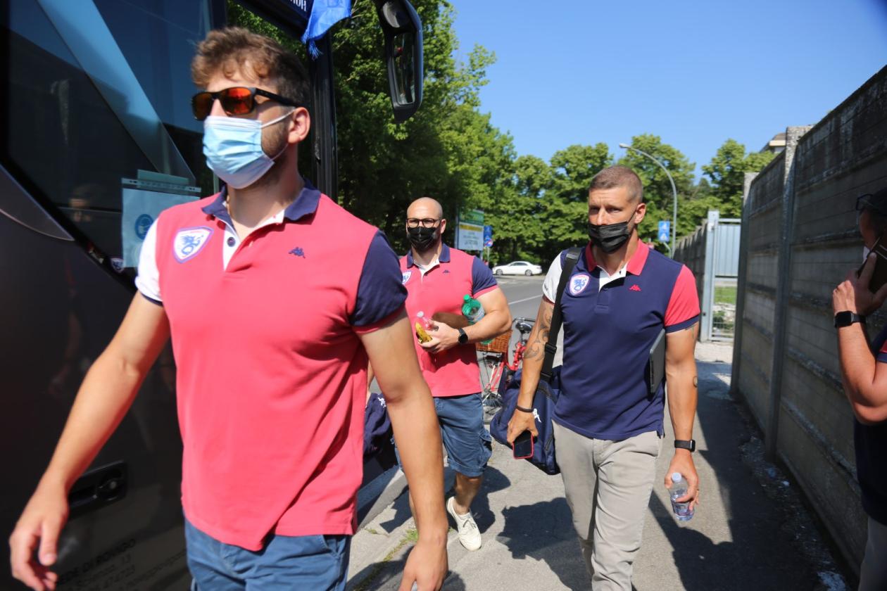 A salutare la partenza della squadra, dal Battaglini, un piccolo gruppo di tifosi. Piccolo, ma rumoroso: i supporter dei Bersaglieri, infatti, si sono fatti sentire "forte e chiaro", e continueranno a farlo anche allo stadio per gli 80 minuti della finalissima.