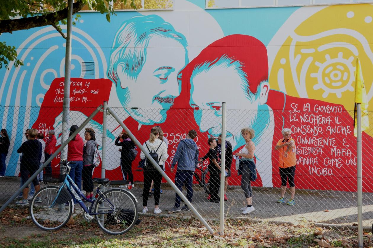 Ieri, nel trentennale delle stragi di Capaci e Palermo, sulla facciata della palestra Barbujani in Tassina è stato inaugurato il murales dedicato ai due magistrati realizzato dai ragazzi della 4° F del liceo artistico Celio-Roccati sotto la guida dell’artista Luca Vallese, in arte Zentequerente.