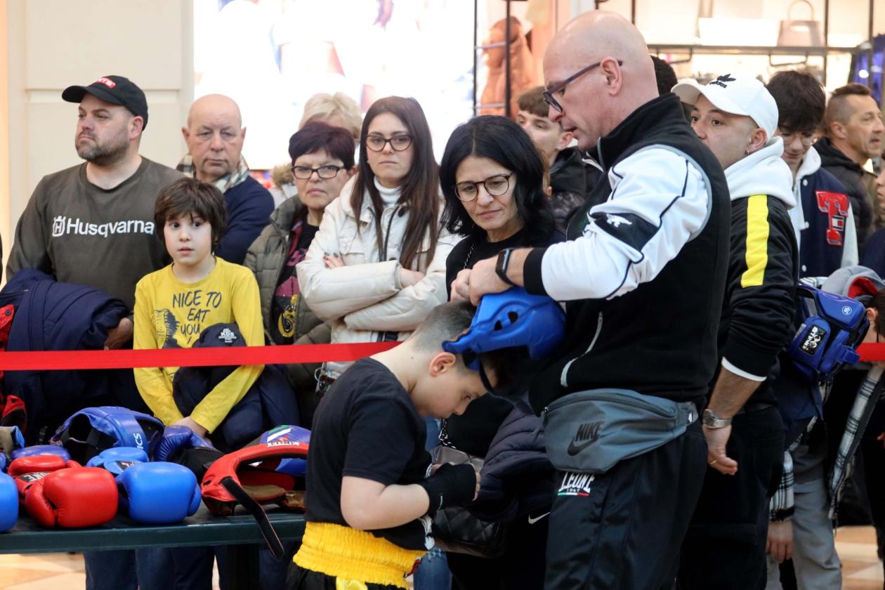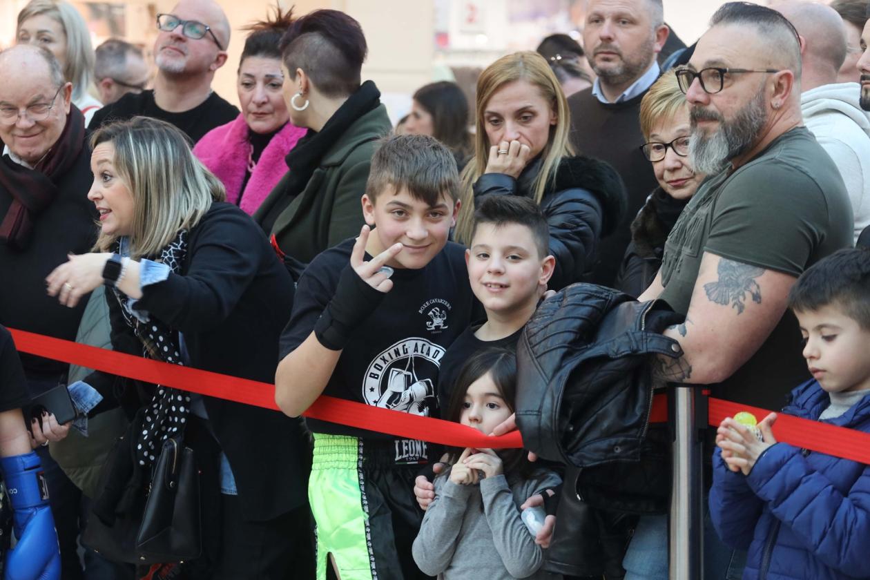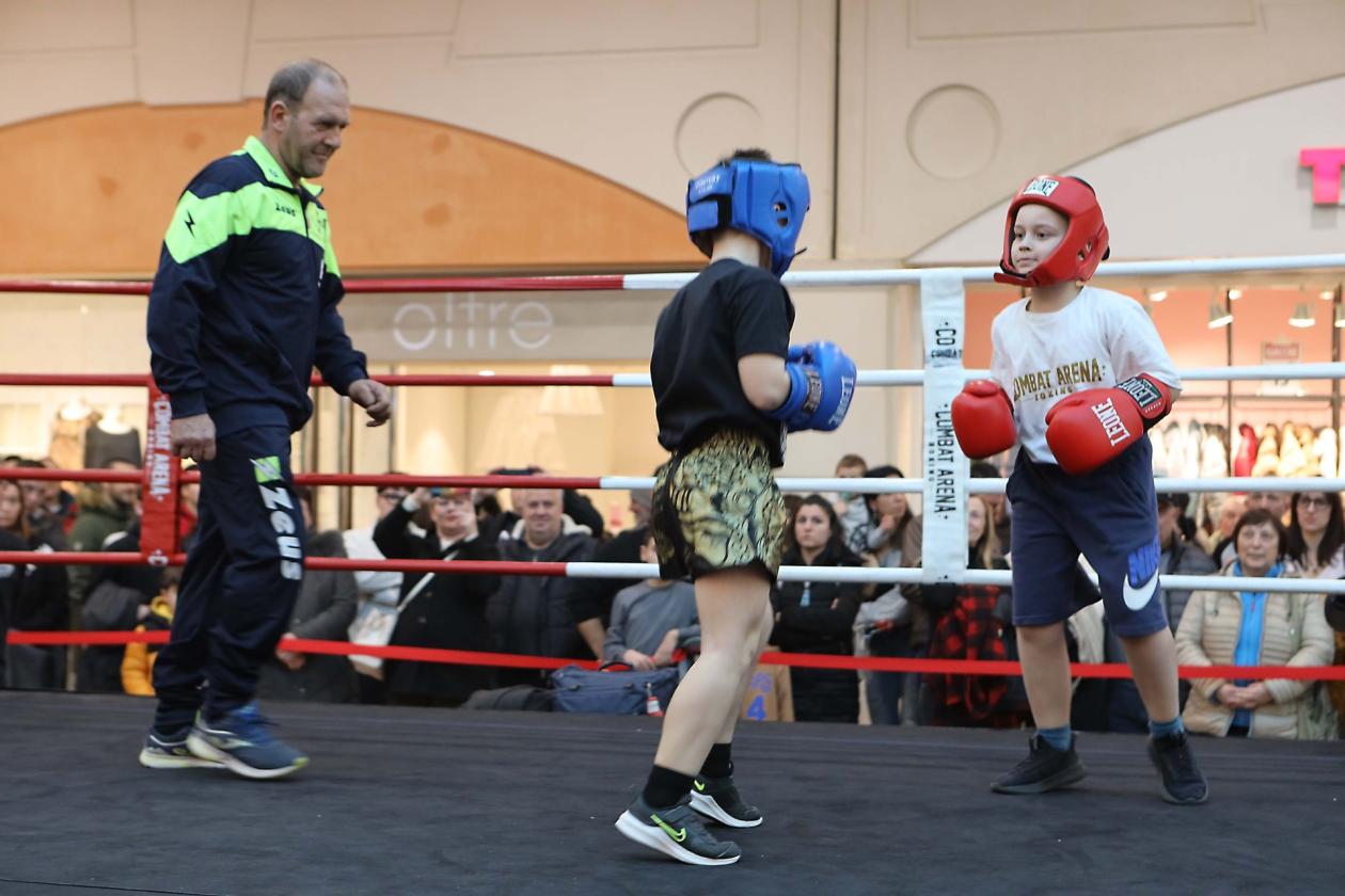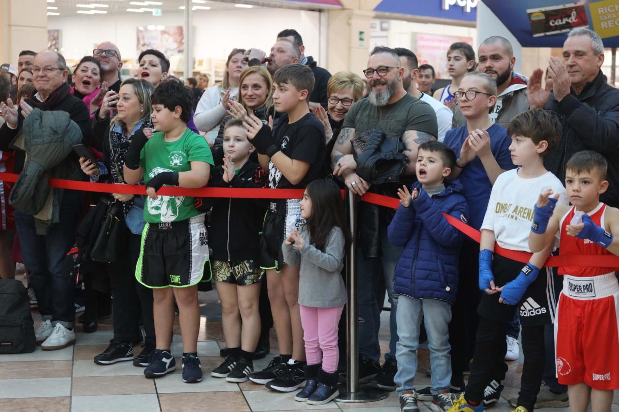 "Sparring Io", l'iniziativa voluta dalla Pugilistica Rodigina ha affascinato i visitatori del centro commerciale "La Fattoria" di Rovigo, nel pomeriggio di sabato 4 febbraio. Sul ring tanti ragazzini che si sono cimentati nella Noble Art, mentre tutto attorno familiari e curiosi che incitavano i piccoli pugilisti.