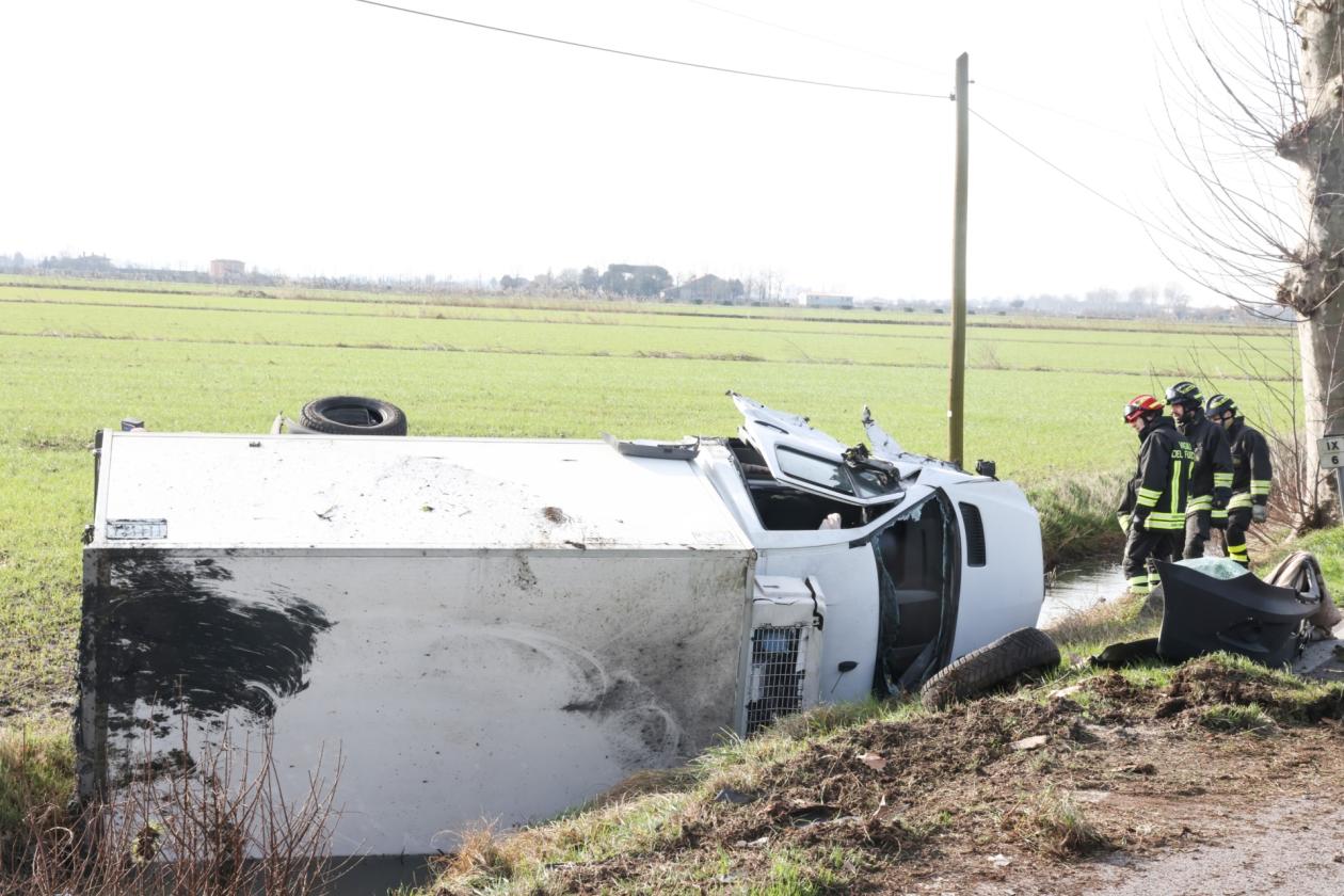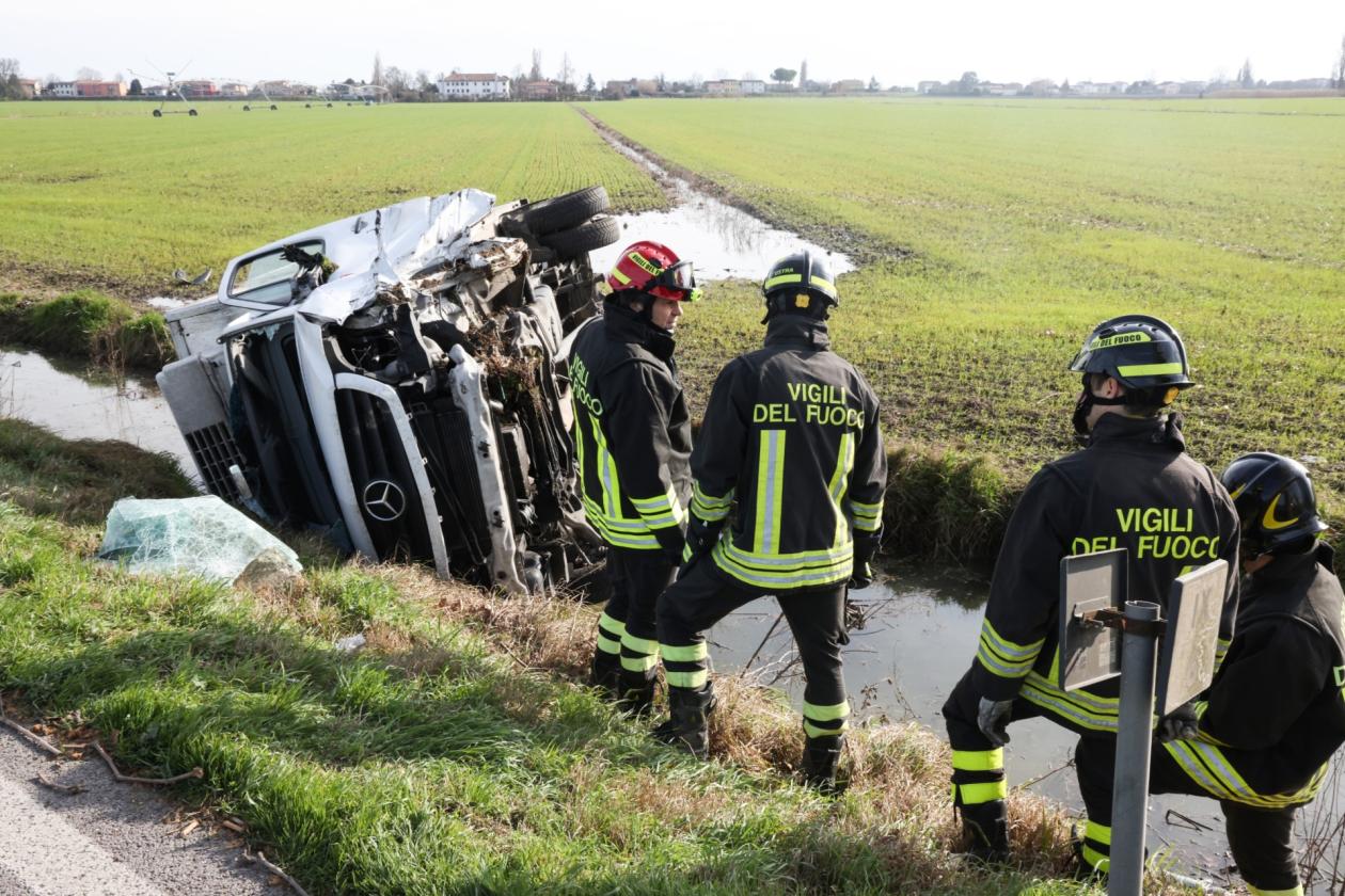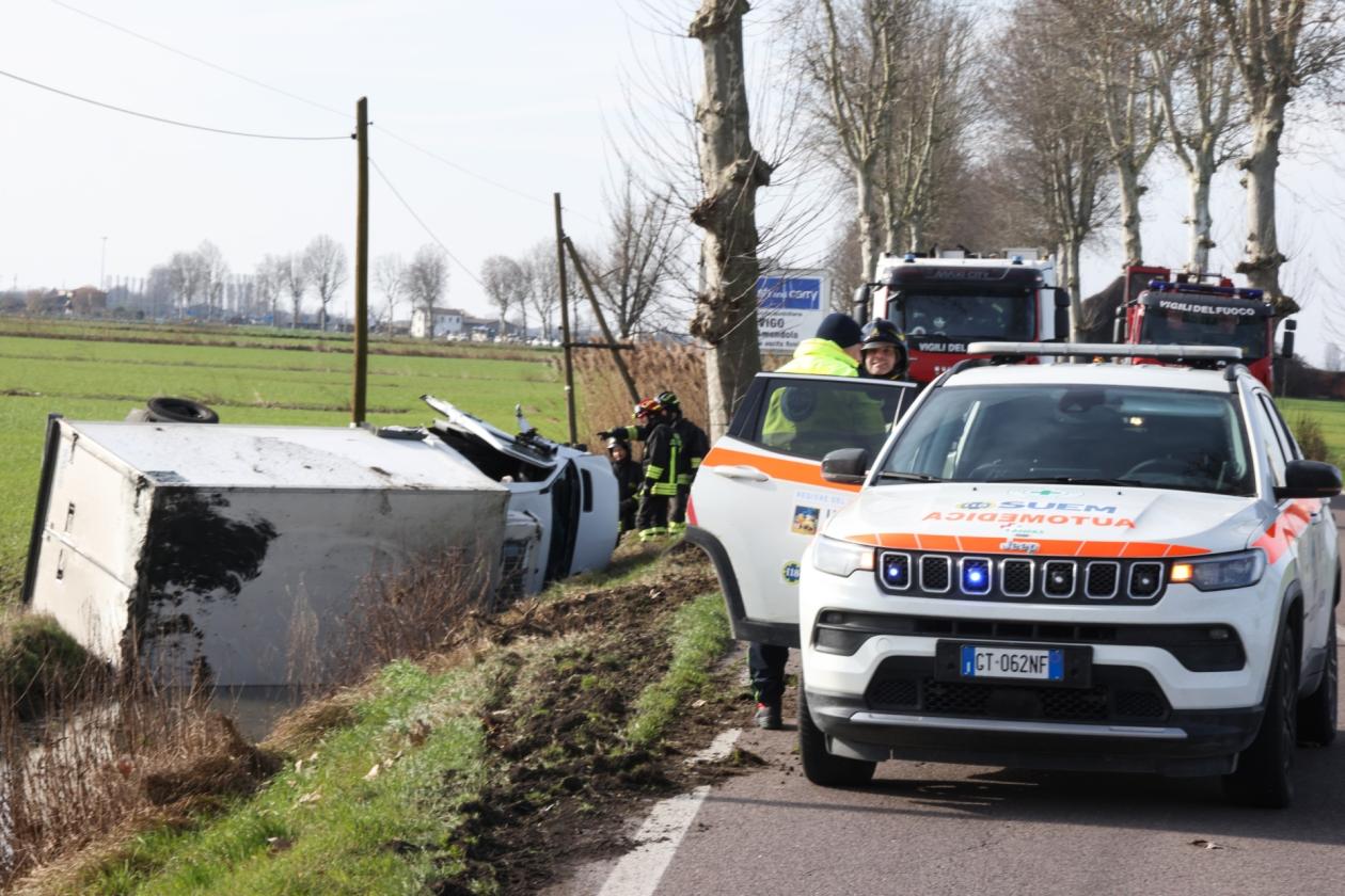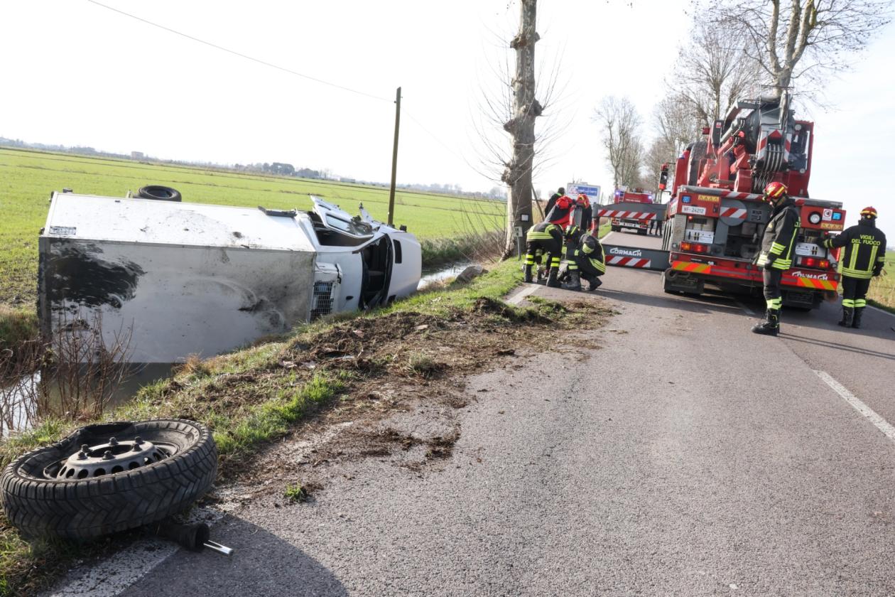 Bruttissimo incidente poco dopo le 14 di oggi, lunedì 17 febbraio, sulla regionale tra Rovigo e Villadose, esattamente nel tratto compreso tra le due rotatorie. Secondo una prima ricostruzione, a scontrarsi sono stati un SUV con a bordo un medico donna e un furgone adibito al trasporto della carne con a bordo tre persone. Il primo dei due mezzi, dopo l'impatto frontale, persa una ruota, è finito intraversato a metà della carreggiata, bloccando la circolazione. Il secondo, ossia il furgone, si è invece ribaltato nel canale di scolo, dopo aver a propria volta perso uno pneumatico.