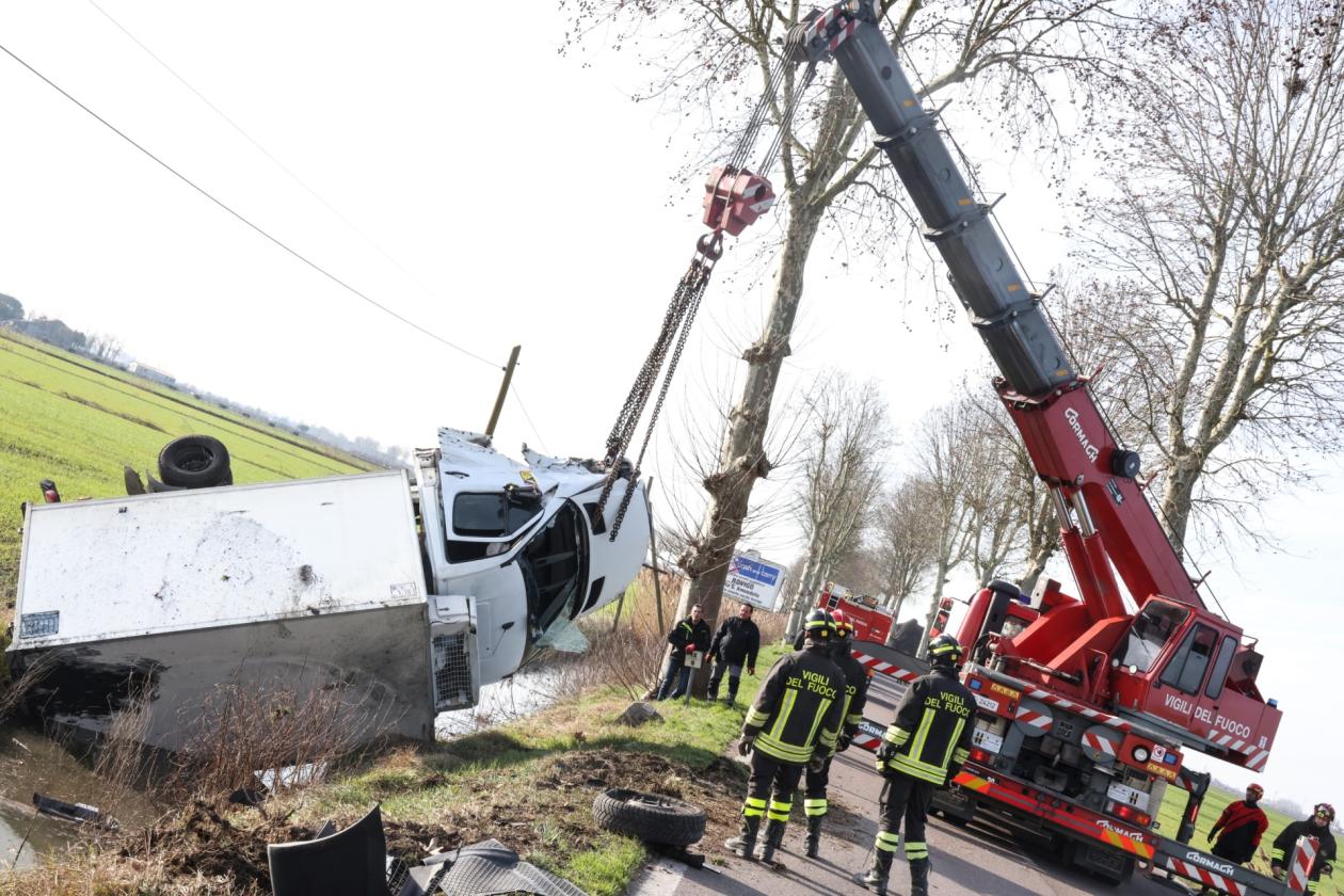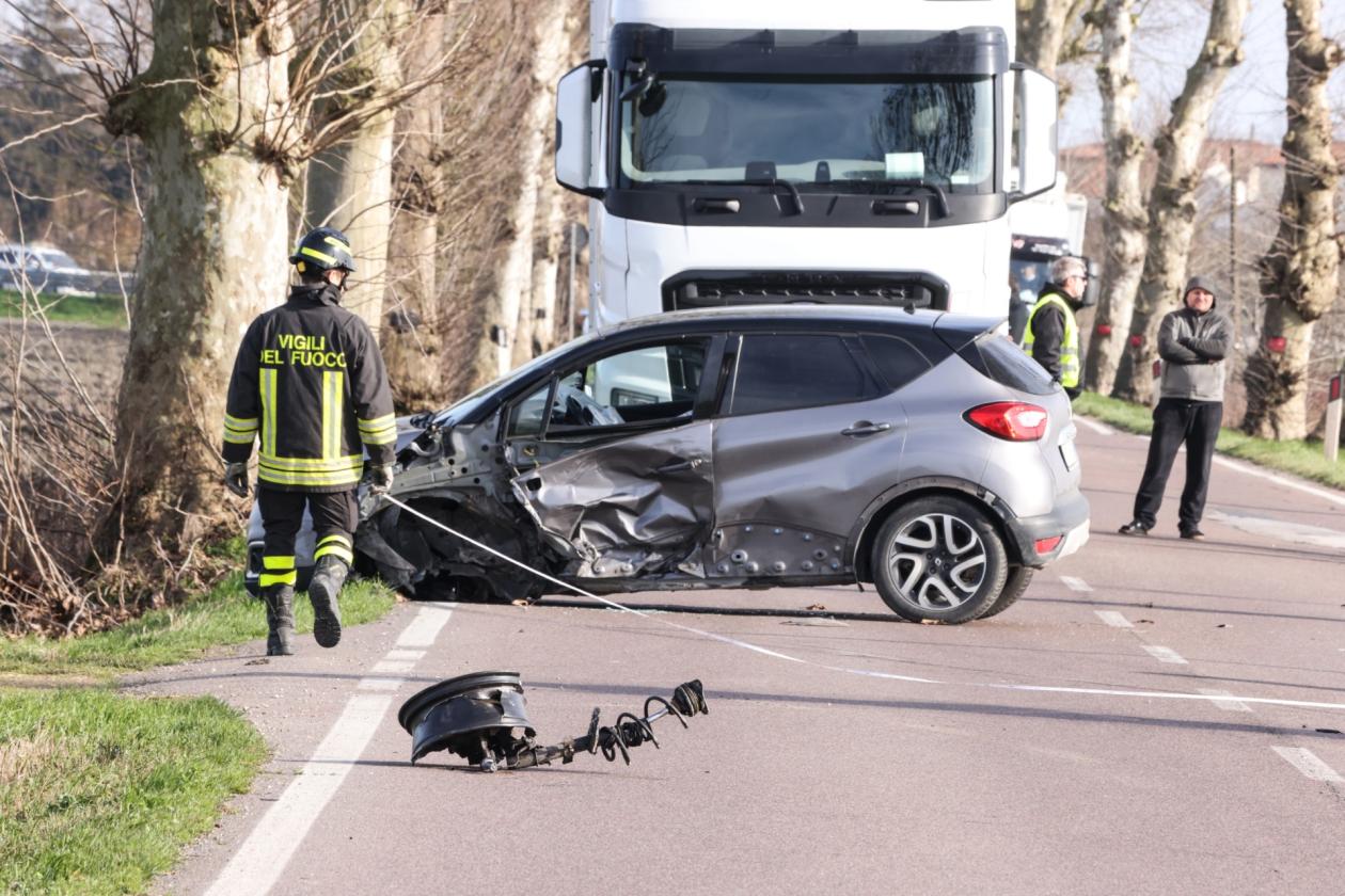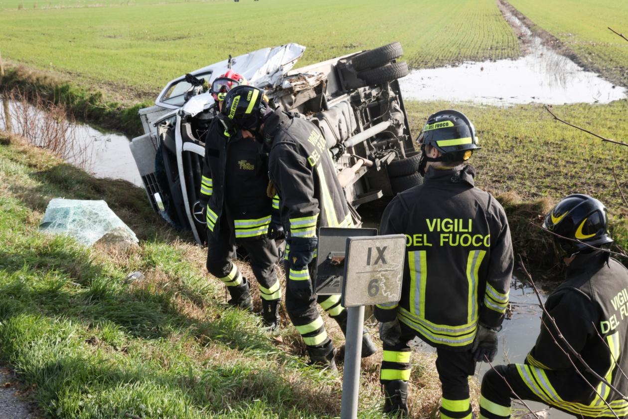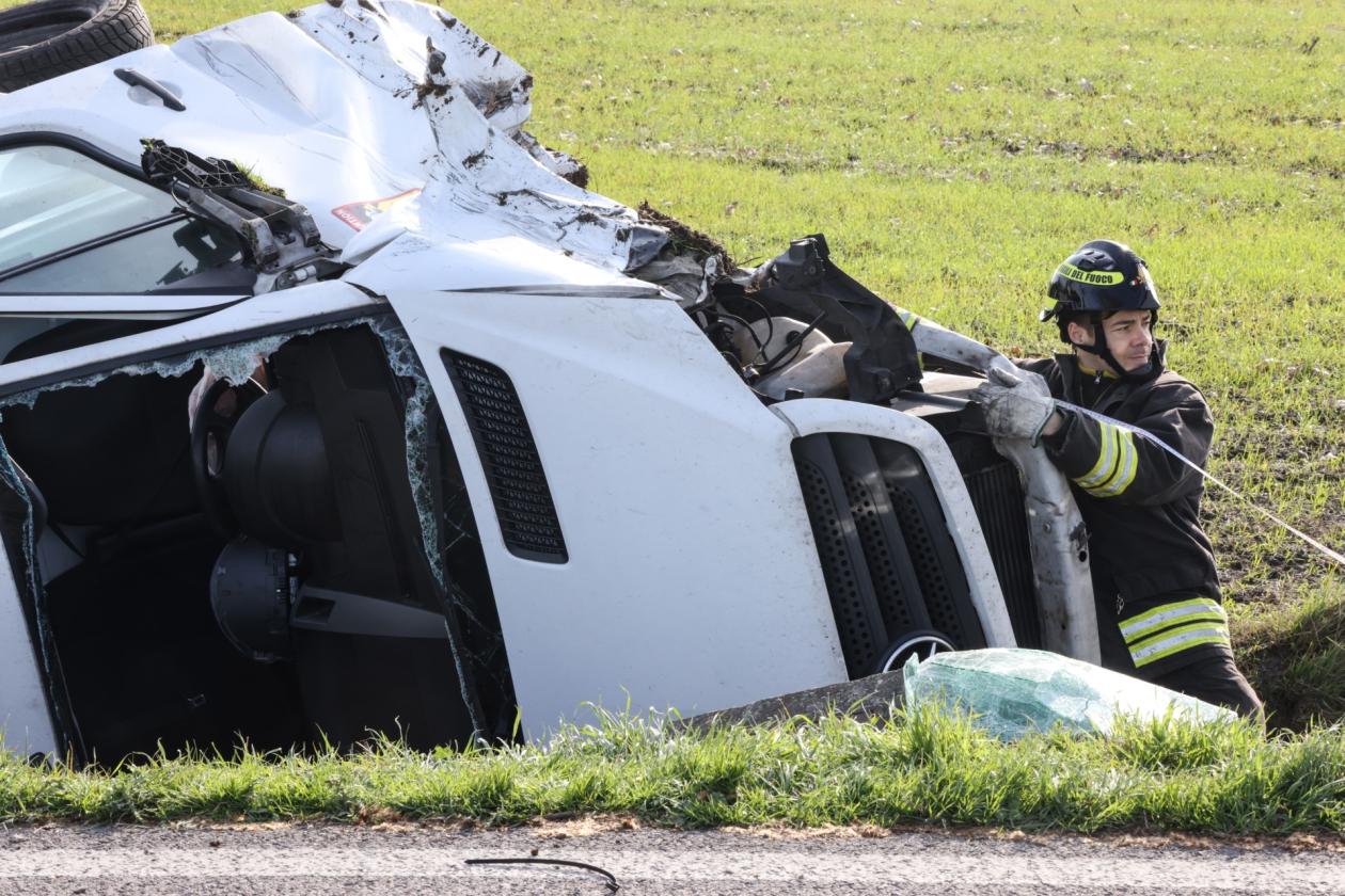 Bruttissimo incidente poco dopo le 14 di oggi, lunedì 17 febbraio, sulla regionale tra Rovigo e Villadose, esattamente nel tratto compreso tra le due rotatorie. Secondo una prima ricostruzione, a scontrarsi sono stati un SUV con a bordo un medico donna e un furgone adibito al trasporto della carne con a bordo tre persone. Il primo dei due mezzi, dopo l'impatto frontale, persa una ruota, è finito intraversato a metà della carreggiata, bloccando la circolazione. Il secondo, ossia il furgone, si è invece ribaltato nel canale di scolo, dopo aver a propria volta perso uno pneumatico.