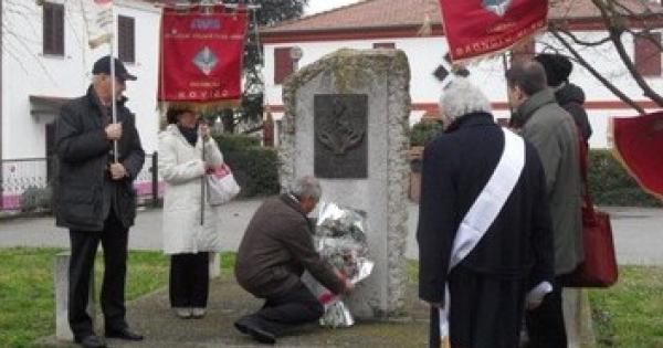 La deposizione di un mazzo di fiori al monumento ai Caduti durante la Festa del donatore