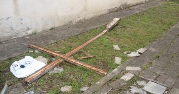 La croce utilizzata per sfondare il vetro dell'ufficio postale