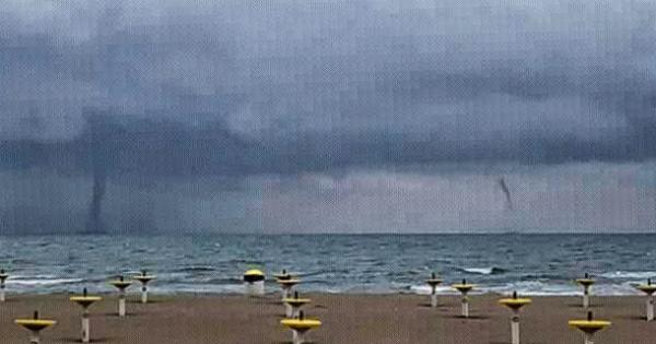E poco dopo, sul mare, si sono create almeno due distinte trombe d’aria, che fortunatamente hanno esaurito la propria furia sull'Adriatico. La foto è stata scattata a Rosolina Mare da Filippo Marzola. E anche questa è davvero bellissima e impressionante.