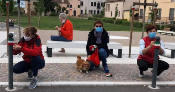 Daniela Malin, referente del gruppo da oltre trent’anni, ha invitato le donne a continuare con il lavoro a uncinetto facendo piastrelle con i colori della bandiera italiana per poi affiggerle sui lampioni, nelle panchine, negli alberelli di tutto il centro del paese. Donne esperte: chi nella manualità, chi nella cucitura, chi nell’organizzare.