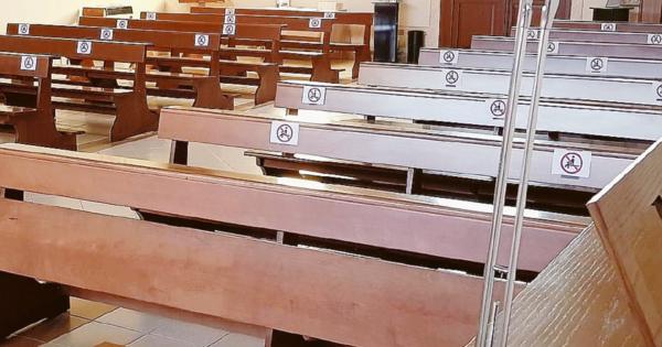 Appena all’interno un tavolino con a disposizione gel igienizzante, salviettine e mascherine per chi ne fosse sprovvisto. I posti a sedere sono limitati, e contrassegnati: ci si può accomodare solamene dove non è presente il segnale di “divieto”, quindi nel rispetto obbligatorio del mantenimento della distanza di sicurezza interpersonale di minimo un metro, regola valida anche mentre si entra o si esce dalla chiesa.