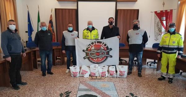 Dopo la fruttuosa raccolta alimentare di sabato scorso, nella mattinata di mercoledì 10 marzo i volontari dell'associazìone Sol.Id. Onlus Polesine hanno provveduto alla consegna dei generi alimentari. Si è tenuta infatti nella sala consiliare del Comune di Rosolina, la donazione delle derrate alimentari, con la gentilissima presenza del sindaco Franco Vitale, il responsabile locale di Sol.Id. Onlus Massimo Baratella ed i volontari della locale Protezione Civile.