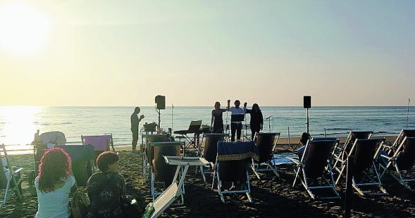 “L’alba - spiegano gli organizzatori - è evento che si ripete da millenni, eppure reca sempre emozioni e suggestioni nuove, quando il sole si leva dal mare: una palla rossa che poi diventa arancione e gialla… e lo sciabordio delle onde sulla spiaggia. Alla fine non poteva mancare il duetto, baritono e soprano, sulle note della nostra tradizione: ‘O sole mio’, come augurio di una buona estate per tutti”.