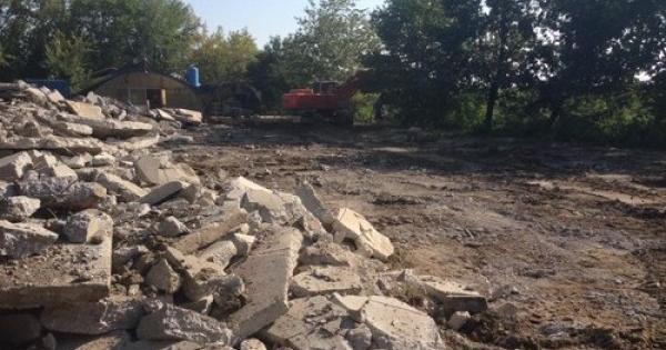 Una immagini dei calcinacci che la "Don Sandro Dordi" sta portando via dal centro "Le redini"