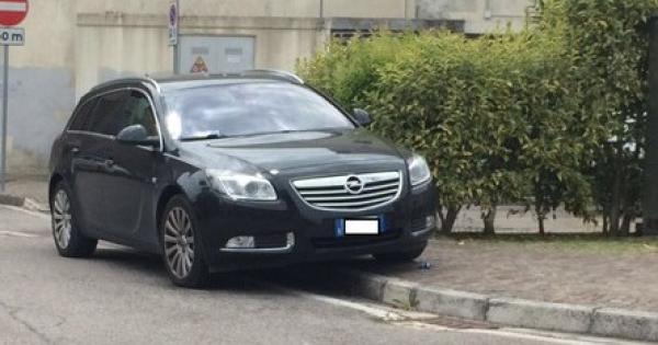 L'auto del sindaco di Porto Viro, Thomas Giacon, parcheggiata sul marciapiede