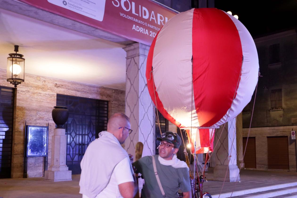 La serata si è aperta alle 21.15 in piazza Cavour con la compagnia Teatro Moro e lo spettacolo “Airship Pirate” de Il Teatro siete Voi. Yuri, protagonista dell’opera teatrale, ha guidato il pubblico tra guasti, imprevisti e tabù per inseguire il suo amore messicano, mostrando i folli giochi del Paese immaginario della Lakatia. Tra risate e anche qualche riflessione, lo spettacolo ha saputo intrattenere e commuovere, sfidando paure e pregiudizi con simpatia e leggerezza, conquistando il cuore di grandi e piccini.