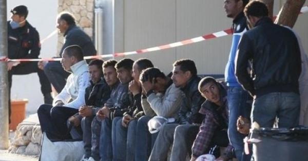 Un gruppo di profughi appena giunto in Italia
