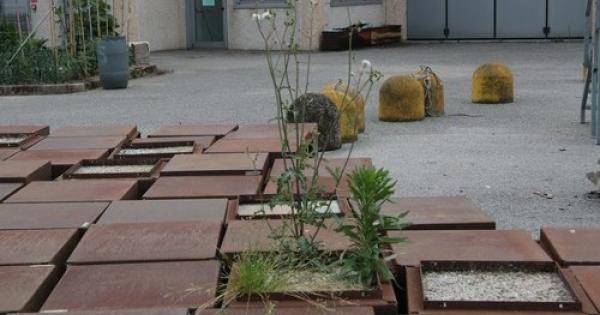 L'erba cresce sui cubi ammassati nel magazzino comunale di San Sisto
