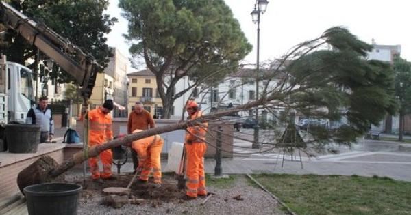 L'assessore ai lavori pubblici Saccardin ha annunciato la ripiantumazione in piazza XX Settembre a Rovigo dei pini marittimi tagliati in estate poiché il maltempo li aveva resi pericolanti.