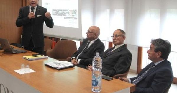 I relatori del convegno a Confapi con i Maestri del lavoro