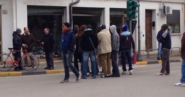 Un momento della protesta dei profughi a Porto Viro di poco tempo fa