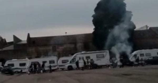 L'accampamento abusivo nel parcheggio del campo sportivo (grazie a Il Mattino di Padova)