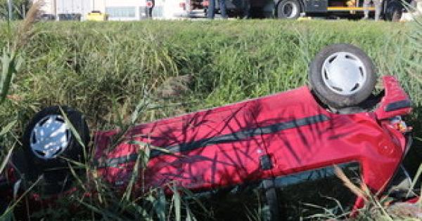 Le foto dell'utilitaria rovesciata sono impressionanti.