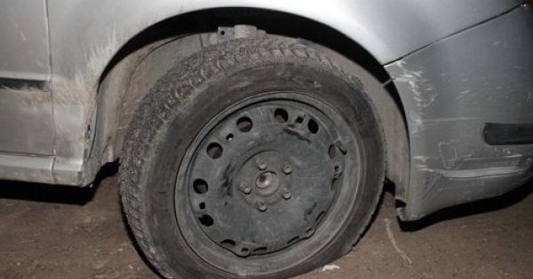 L'auto di don Silvio Baccaro con le gomma tagliata