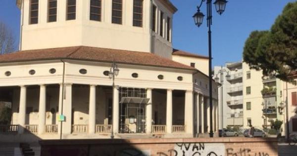 Graffiti e vandalismi alla Rotonda. Ancora una volta l'area di piazza XX Settembre, che ospita il tempio della Rotonda, uno dei simboli di Rovigo, viene preso di mira dai vandali.