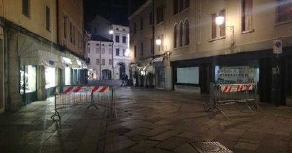 Le transenne ancora in strada alle 23 di giovedì 8 febbraio