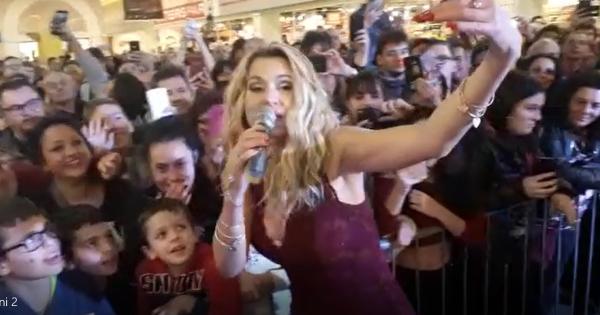 Un selfie-video con il pubblico presente che acclamava la sua presenza e qualche battuta. Sempre bellissima, sexy e anche simpatica e disponibile.
