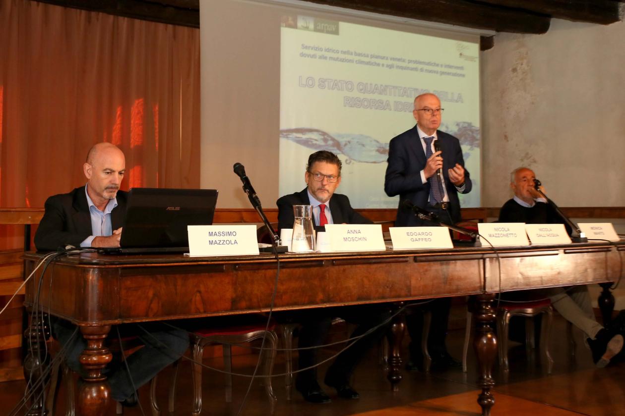 Collegato al tema anche la questione dei cambiamenti climatici snocciolata in aula da Massimo Mazzola di Arpav. “A dircelo il Centro meteo di Teolo: ci attendiamo nei prossimi anni un aumento delle temperature massime e minime e episodi di ondate di calore. Particolarmente colpita da questo evento sarà la pianura padana. Le temperature medie sono in aumento ed è un dato incontrovertibile. Non resteremo senz’acqua perché abbiamo il bacino sotto ma sicuramente sarà necessario un utilizzo maggiore per irrigare”.